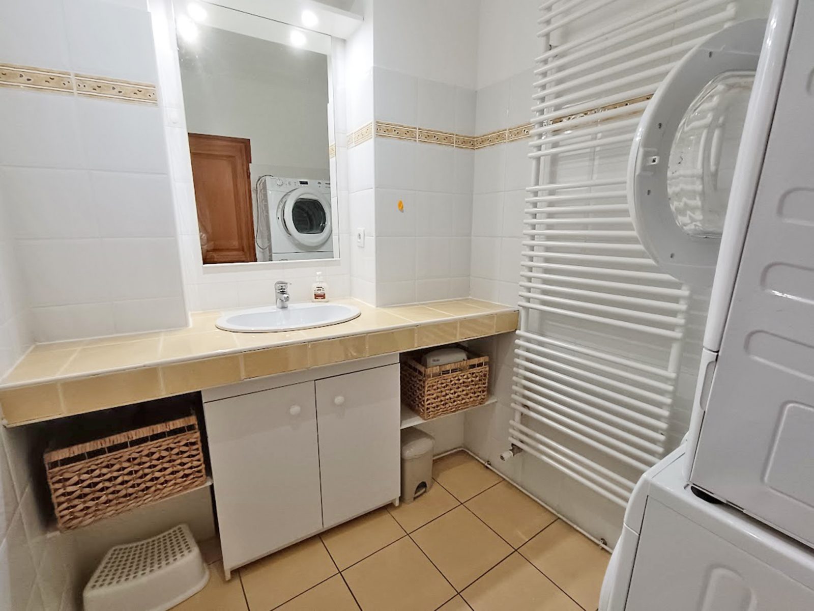 The living room has a sofa, a coffee table, a table and four chairs, and a flat-screen TV. The kitchen area has an oven, microwave, fridge with freezer, gas hob, extractor fan, kettle, filter coffee maker, dishwasher and all the crockery and cutlery you need. The master bedroom has a double bed (140x190cm) and storage space. The second bedroom has two single beds (90x190) and storage space. The bathroom has a shower, vanity unit, towel warmer, hairdryer, washing machine and tumble dryer. A private cellar is available in the basement. Our kitchen stock is at your disposal (coffee, tea, oil, vinegar, salt, coarse salt, pepper...) as well as household products. You can use them as you wish. We thank you in advance for renewing what you have finished during your stay. Non-smoking accommodation. Towels, bed linen and household linen are available from the concierge at an additional cost. Cleaning at the end of your stay available from the concierge service at an additional cost.