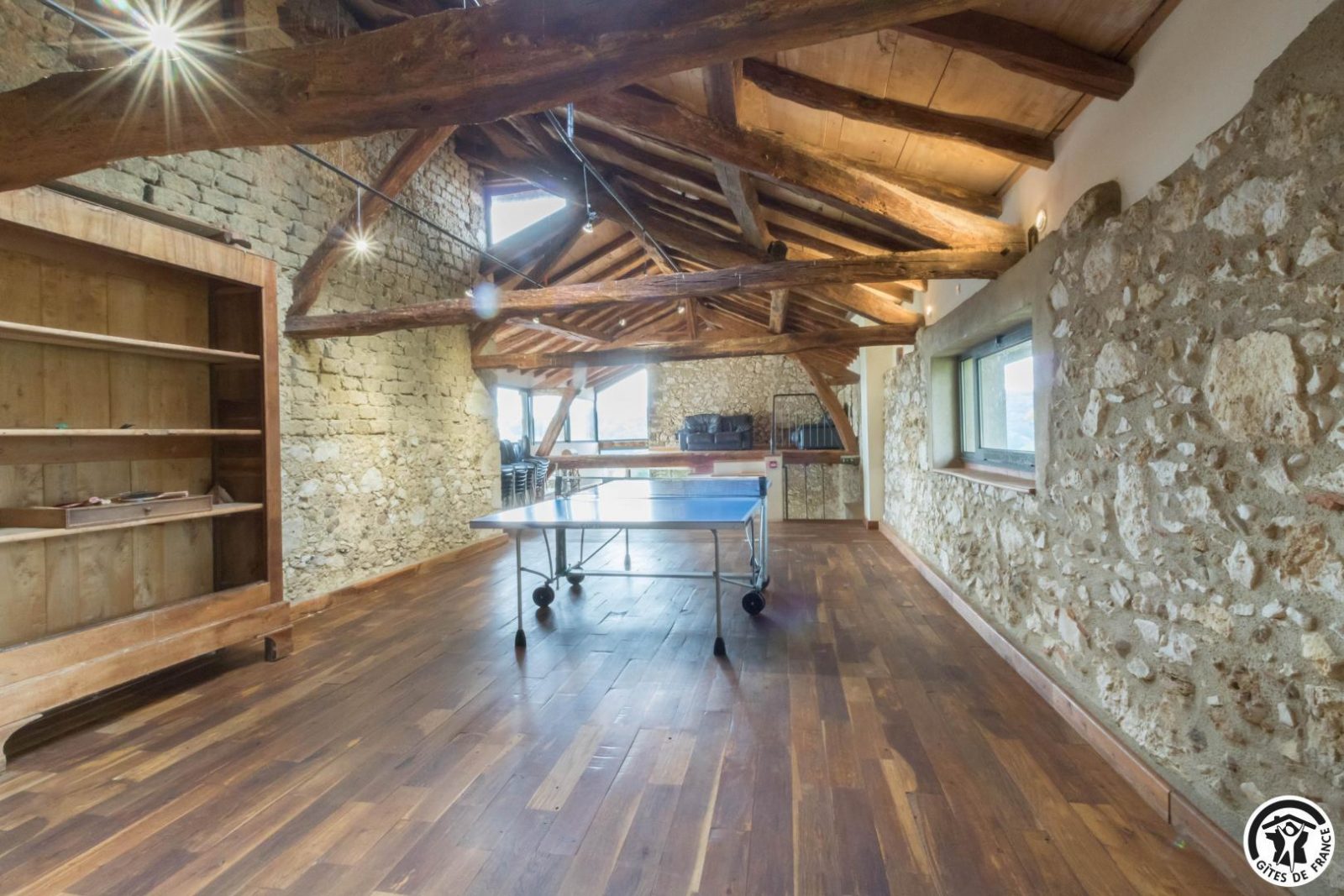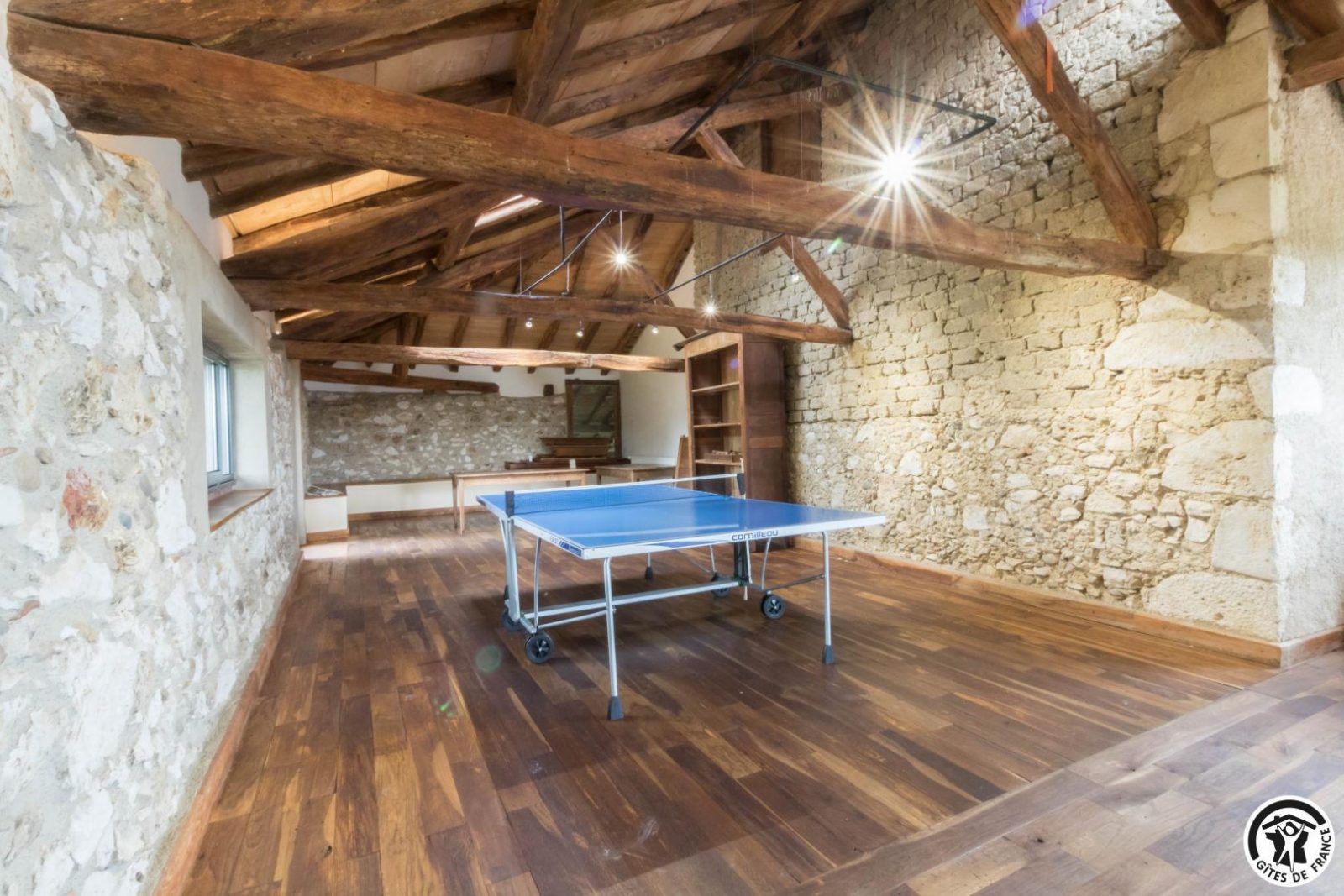 Group gîte with character, combining traditional materials (stone, earth, wood) with contemporary features (large picture windows, staircases, fireplaces, metal...). Good tips nearby : swimming at the Gorges de la Save 5km away, Boulogne-sur-Gesse 6km away (restaurants, shops, market), Gallo-Roman village and museum at Montmaurin 8km away, restaurant inn at Escanecrabe 13km away, Cardeilhac forest arboretum 14km away, Gimone swimming lake 15km away, 25km north of Saint-Gaudens (train station, Garonne river), Montréjeau 27km away (swimming lake, train station, golf course), Saint-Bertrand-de-Comminges (France's favourite village and Grand Site Occitanie) 36km away, Auch (Gers department) 52km away, Tarbes (Hautes-Pyrénées department) 65km away, Bagnères-de-Luchon (skiing and thermal baths) 67km away and Toulouse 90km away. Gîte on 2 levels: - Ground floor: traditional kitchen with separate washing-up area (dishwasher and washing machine) and large fireplace. Dining room of 85 m² with fireplace and TV/reading area for 40 people, with access to the outside. 2 bedrooms, each with 2 twin beds (90*200cm). Spacious toilets for communal areas (2 washbasins, 2 WCs, 2 mirrors, 1 shower). Accessible to the disabled. - Upstairs, under-roof function room with ping-pong table, exposed roof frame (meetings, seminars, parties...), accessible from the ground floor dining room, direct access to the swimming pool. 4 bedrooms (1 bed 140*190cm)(1 bed 140*190cm)(1 bed 140*190cm and 1 bed 90*190cm on the mezzanine, steep staircase and low ceiling)(1 bed 140*190cm and 2 beds 90*190cm, bunk beds). Each bedroom has a shower and washbasin opening onto the sleeping area, and a separate closed WC. 5 foldaway beds are also available.
