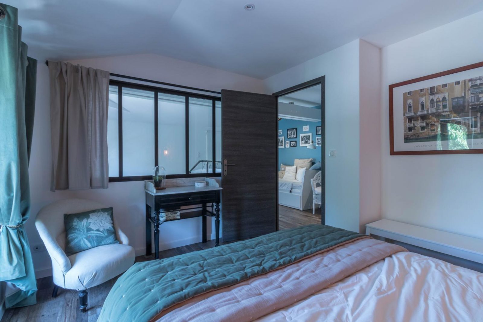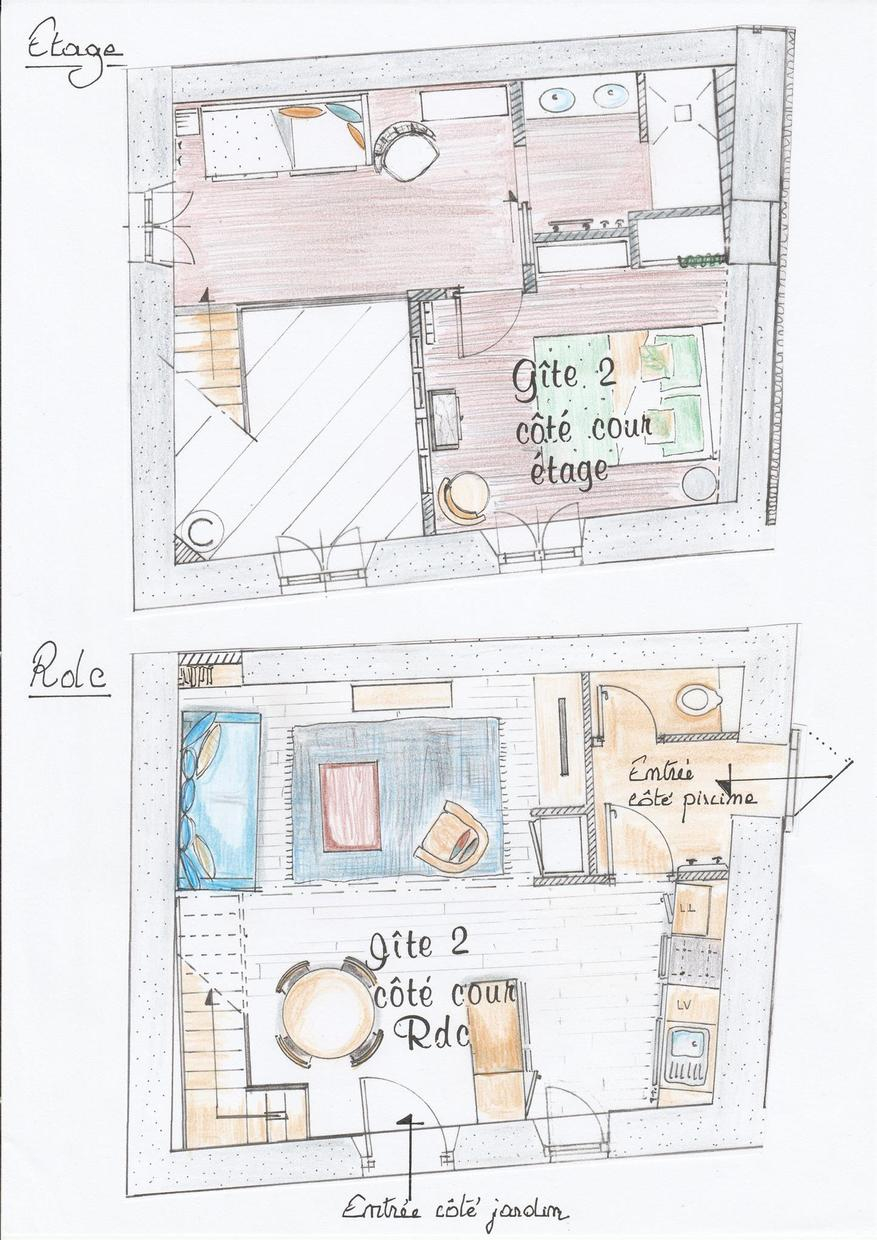 Sophie, the owner, has restored this house with passion and taste, choosing high-quality materials and harmonious furnishings. The Voie Verte cycle route is 2.8km away (the gîte has the Accueil Vélo label). La Source Wake-Park in Carbonne is 7km away for wake-boarding and water sports; Rieux-Volvestre, one of France's most beautiful detours, is 9km away on the ViaGarona hiking trail (the route to Santiago de Compostela); Martres-Tolosane, the earthenware capital of Haute-Garonne, is 15km away; Toulouse is 50km away. Ideal for a private holiday with friends or family, the 2 adjoining gîtes offer a total capacity of 8 people, with separate entrances, 2 independent car parks, a private courtyard, a shared garden and heated swimming pool. The owners live on site. Le Sourire des Anges 2 : - Ground floor: entrance, living room with kitchenette opening directly onto the private courtyard, WC. - Upstairs: mezzanine converted into sleeping area (2 twin 80cm single pull-out beds), bedroom (1 160cm double bed), shower room.