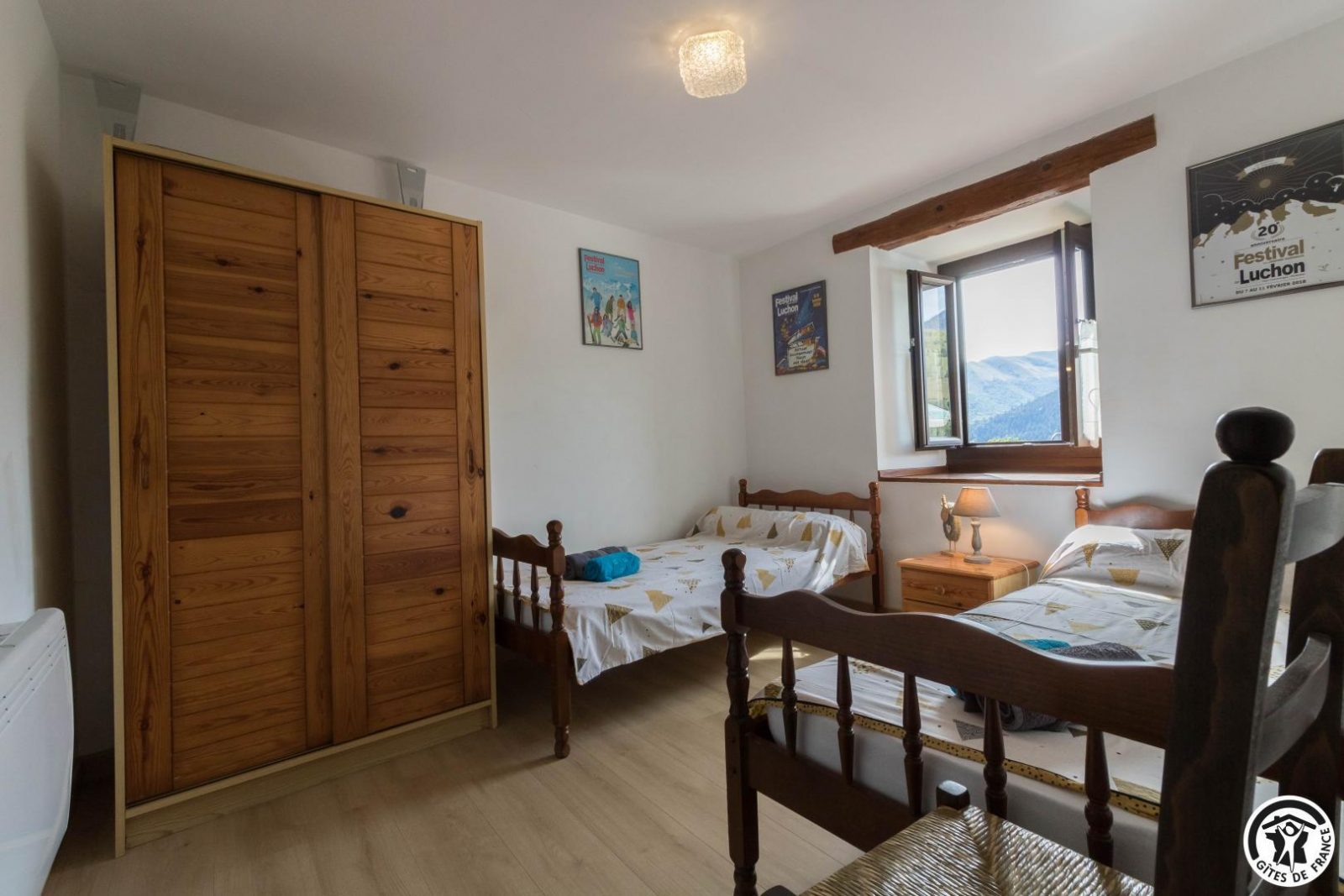 Magnificent exposed stone facade. House with 2 bedrooms and 3 beds, located 8km from the famous Lac d'Oô hike and 11km from Bagnères-de-Luchon. Numerous activities to discover nearby: thermal baths, skiing (Superbagnères resort), riding centre, golf, rafting, canyoning, fishing! Spain is 20 minutes away. This 60m2 single-storey gîte has a 22m2 living room with sitting area, dining area and kitchen. An adult bedroom of 8m2 with 1 bed for 2 people 140*190cm and a children's bedroom of 10m2 with 2 beds for 1 person 90*190cm (stunning views of the mountains from the bedrooms), a bathroom with a shower cubicle and washbasin, a separate WC. Small terrace with garden furniture, deckchairs and barbecue. Public parking 20 metres away. The owners' holiday home is above the gîte.