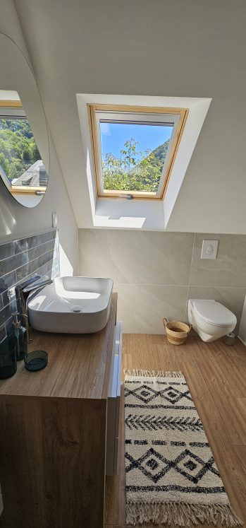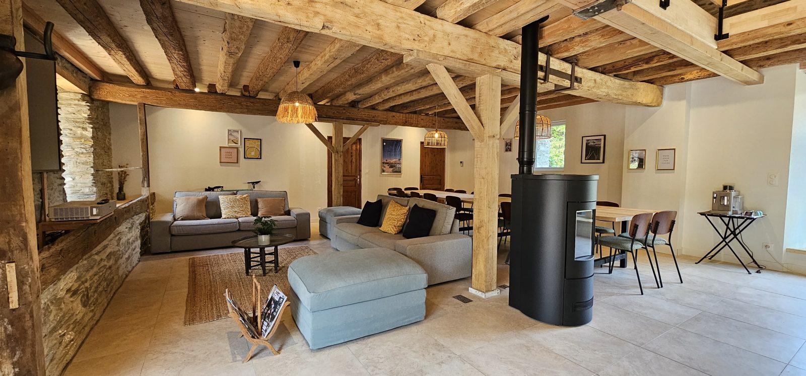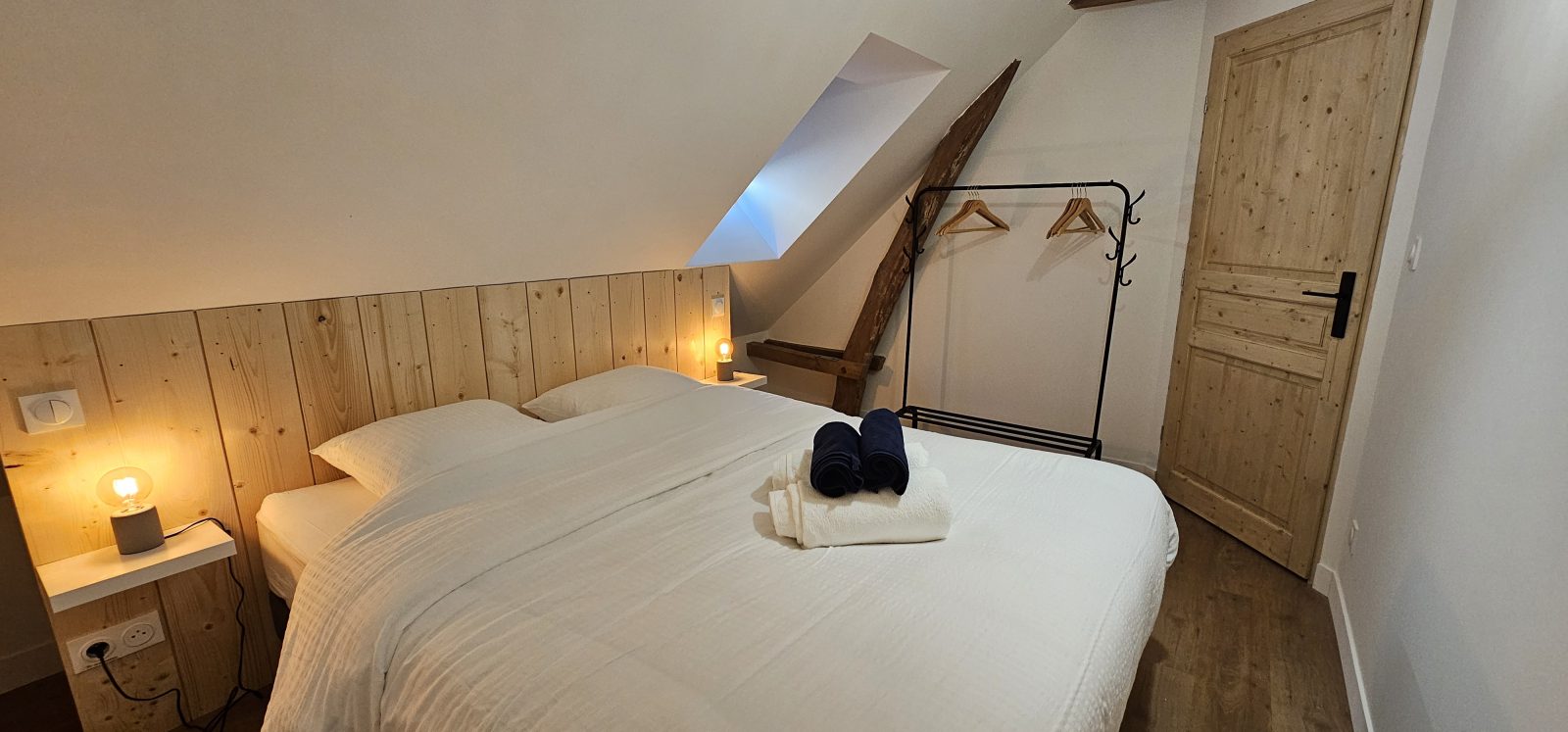 Discover this beautiful 124m2 flat with... - a bright and spacious living room of over 60m2. - a convivial lounge area with a 140cm TV screen and 2 large sofas - a dining area with a large restored antique table and modern armchairs. - a bar with 3 stools. - a large, functional, fully-equipped kitchen with: microwave, oven, induction hob, extractor fan, toaster, dishwasher, washing machine, fridge and freezer, Soda Stream, espresso coffee machine with grinder, glass kettle with thermostat, filter coffee machine, pots and pans, hand blender, scales, all kinds of utensils, plenty of crockery and cutlery... and the rest! Moving upstairs, you'll find 4 bedrooms and 3 shower rooms, one of which is en-suite. Two bedrooms have a double bed (160cm). The third has 2 single beds (90cm). The last bedroom has two twin 80cm beds, which can be combined or separated as you wish. Enjoy... - a view of the mountains, whatever your room. - a 100 or 120 cm shower. - high-quality bedding (slatted bases, mattresses and bed linen made in France to 4-star hotel standards). - wardrobes and a magic headboard that can hide your small suitcase. - bed linen and towels provided. As a bonus, you have free access to our large 70m2 common room with giant screen and spacious lounge, tables for up to 20 guests, table football and darts, espresso coffee machine, sports magazines, library, board games... Outside, there's a 90 m² terrace where you can enjoy a meal or relax in the shade of a tree or parasol. You can also take a dip in our in-ground swimming pool or relax in the wooded garden. For sports enthusiasts, there is a secure bike shed and a bike workshop. Finally, for moments of well-being, a massage room and outdoor sauna are available by prior arrangement.
