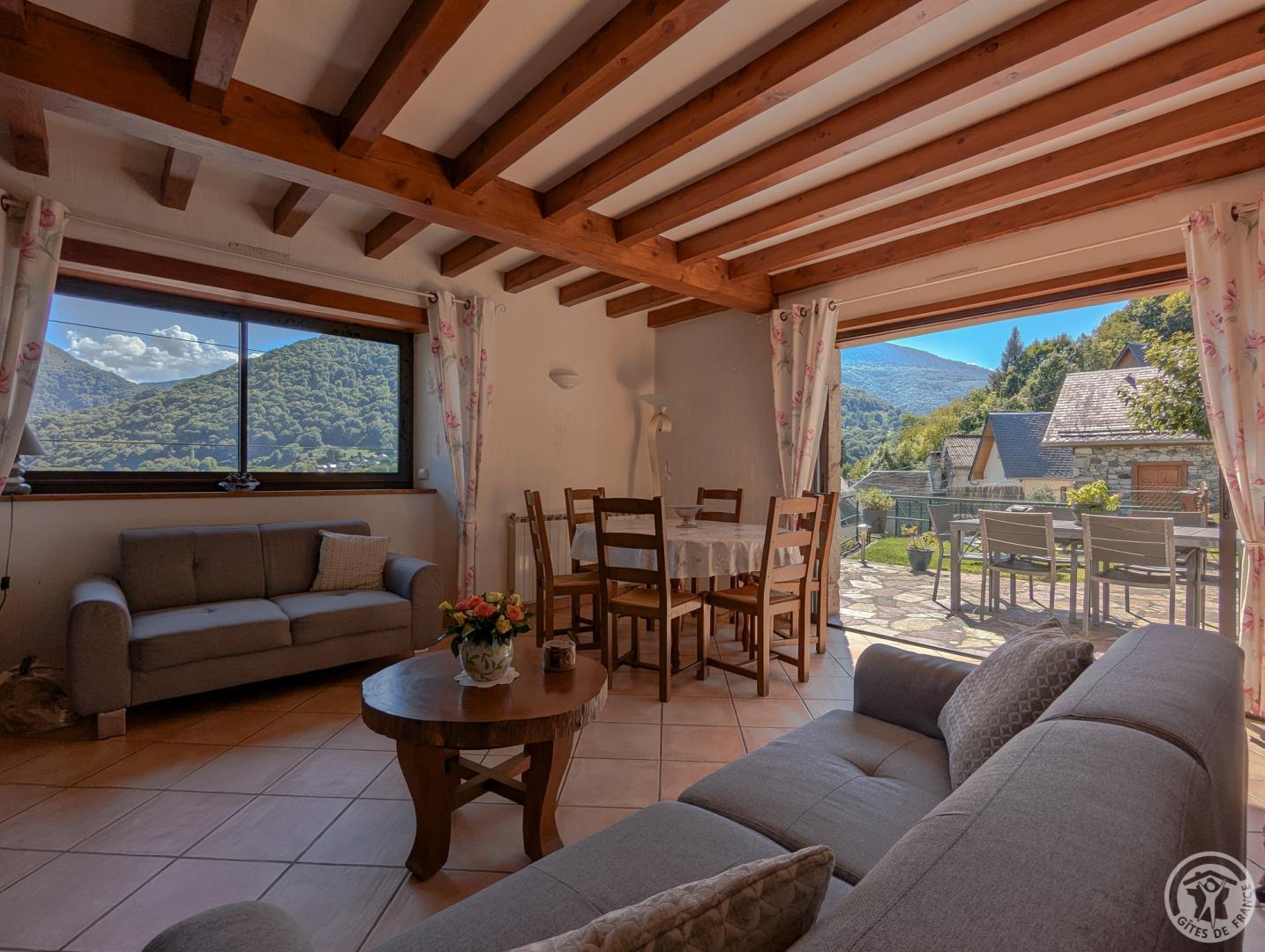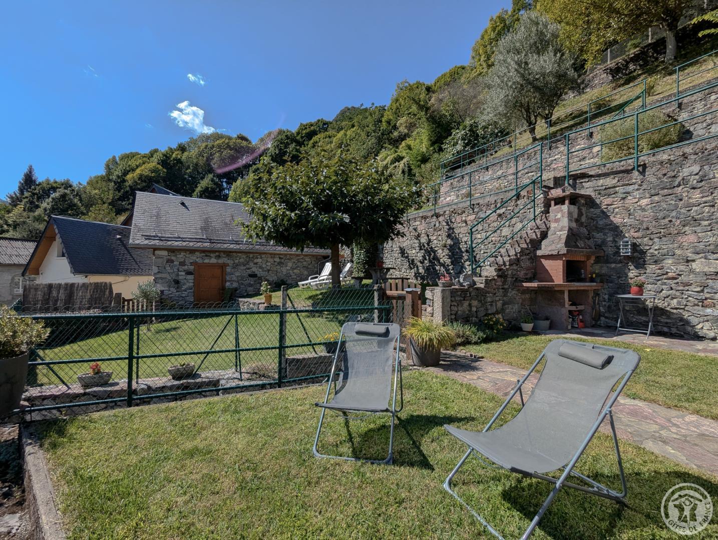 Detached gîte with enclosed garden for 6 people, close to all mountain activities. At the top of the village near the wash-house, old barn renovated with all mod cons, terrace with awning and enclosed garden. Not overlooked. Rest in all seasons in this mountain village, the perfect place to spend a pleasant holiday with family or friends. Hiking, trout fishing, mountain biking and cycling from the gîte. Pyrénées-Hô leisure and adventure park 2km away. Lac du Géry (walks, ginguette) 4km away. Base de Fronsac (rafting and canoeing) 5km away. Saint-Bertrand-de-Comminges (one of France's favourite villages), Bagnères-de-Luchon (skiing, thermal baths, cinema, paragliding, gliding, bike hire, horse riding, golf), Mourtis ski resort and Spain 15km away. Village festival: 3 days from 14 July. MARIGNAC railway station 3KM Ground floor: entrance, laundry room with washing machine and tumble dryer, ski and mountain bike storage. First floor: living room with kitchenette and dining area opening onto terrace, 1 bedroom (1 x 140cm double bed), bathroom + walk-in shower, separate WC. Second floor: 2 bedrooms (1 double bed 160cm) (2 single beds 90cm), bathroom. Bicycle and fishing facilities. Garden table and chairs (6), deckchairs (4) and sun loungers (2). Gas central heating. Parking nearby. Doctor, chemist, dentist, supermarket and bakery.