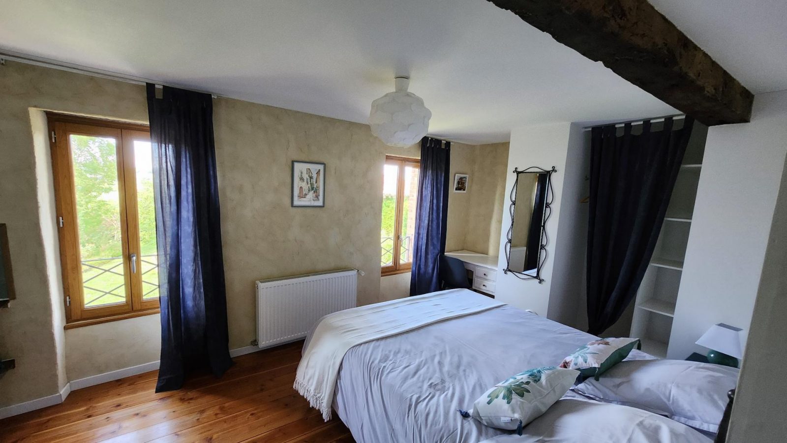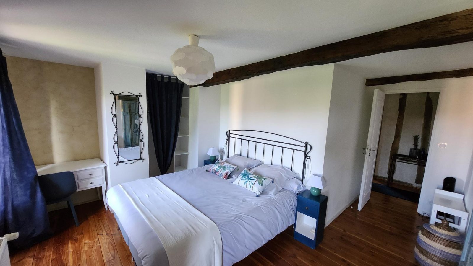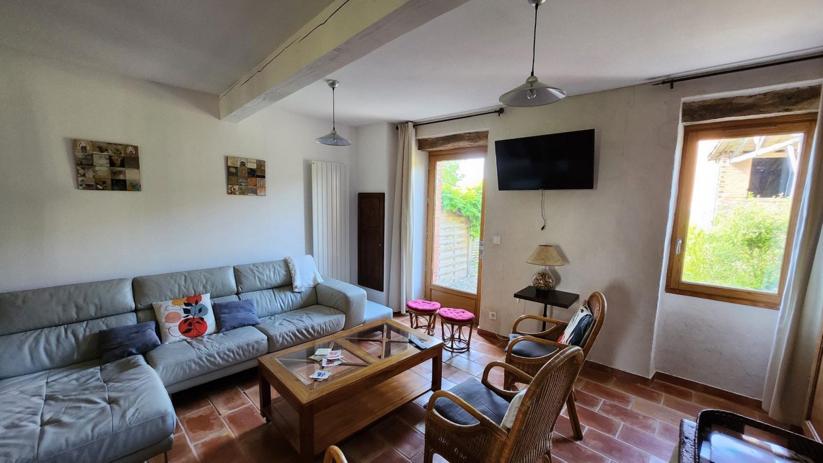 If you love nature, peace and quiet and birdsong, welcome to Domaine Souleilla de la Nine, a peaceful spot south of Toulouse on a Volvestre hill, just 20 minutes from the A64 motorway. Want to escape mass tourism? Come and enjoy a stay away from the hustle and bustle of the city in this comfortable, harmonious gite. You'll love the large swimming pool and its view of the Pyrenees. The gite, renovated with respect for the environment, is part of an eco-responsible approach to tourism. Ground floor: large open-plan room with fitted kitchen, dining area and lounge accessible by two steps, separate WC. First floor: 2 bedrooms (each with a 160cm double bed and en-suite shower room), bathroom with WC. On the second floor, accessible via a slightly steep staircase: an attic bedroom (4 x 90cm beds). The gîte is decorated with works by a local artist. Wood-fired central heating. This former farmhouse, comprising two gîtes and a house, has been renovated mainly using natural, healthy materials (lime plaster, hemp insulation, terracotta, etc.) to respect its architecture and the environment. Two electric recharging points for your car in the large car park (charged according to consumption). No smoking. Baby equipment available on request. Wifi Internet access. Pets not allowed.