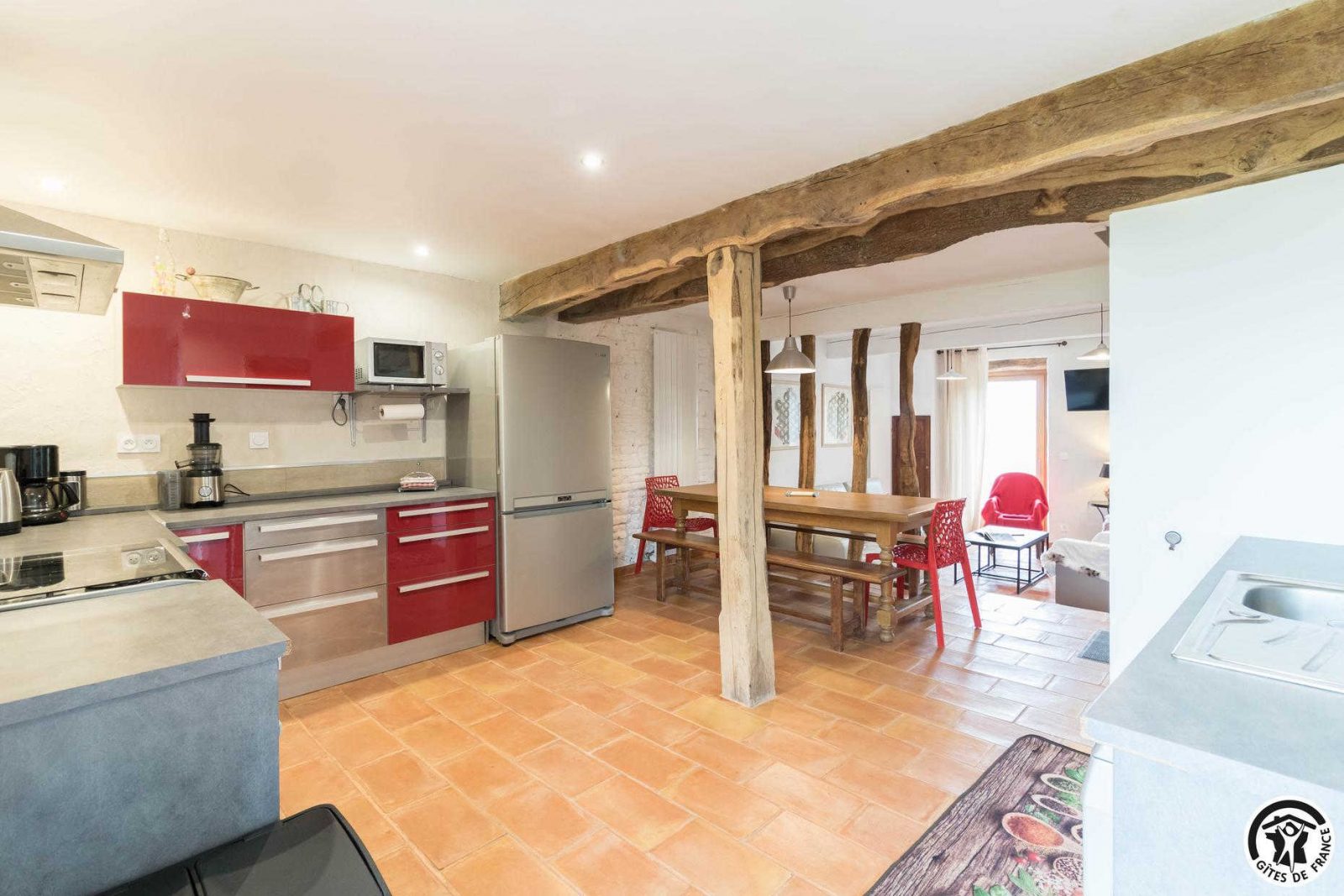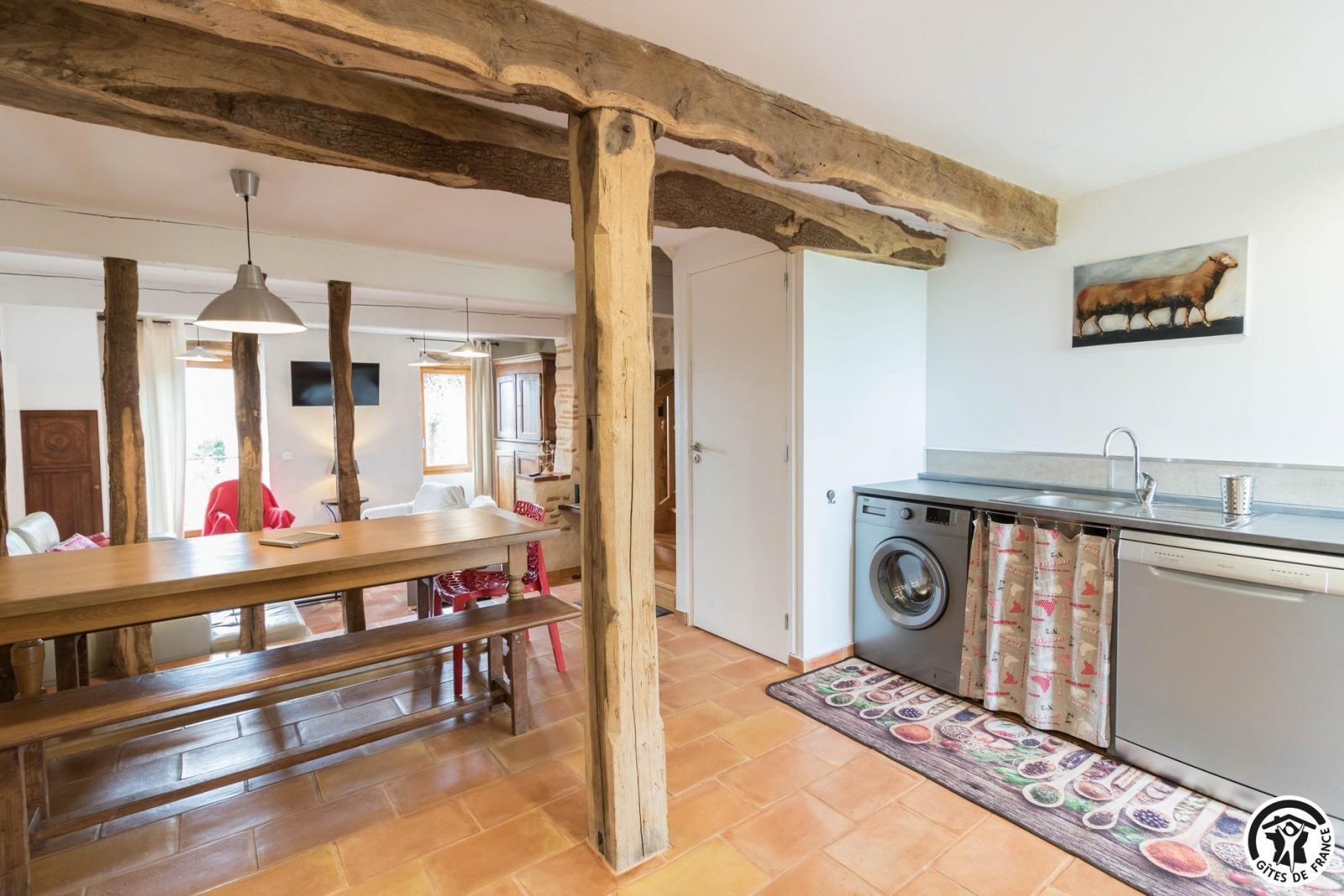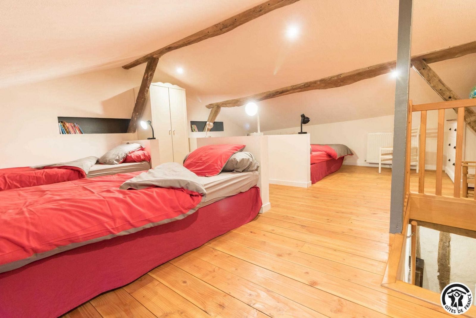 If you love nature, peace and quiet and birdsong, welcome to Domaine Souleilla de la Nine, a peaceful spot south of Toulouse on a Volvestre hill, just 20 minutes from the A64 motorway. Want to escape mass tourism? Come and enjoy a stay away from the hustle and bustle of the city in this comfortable, harmonious gite. You'll love the large swimming pool and its view of the Pyrenees. The gite, renovated with respect for the environment, is part of an eco-responsible approach to tourism. Ground floor: large open-plan room with fitted kitchen, dining area and lounge accessible by two steps, separate WC. First floor: 2 bedrooms (each with a 160cm double bed and en-suite shower room), bathroom with WC. On the second floor, accessible via a slightly steep staircase: an attic bedroom (4 x 90cm beds). The gîte is decorated with works by a local artist. Wood-fired central heating. This former farmhouse, comprising two gîtes and a house, has been renovated mainly using natural, healthy materials (lime plaster, hemp insulation, terracotta, etc.) to respect its architecture and the environment. Two electric recharging points for your car in the large car park (charged according to consumption). No smoking. Baby equipment available on request. Wifi Internet access. Pets not allowed.