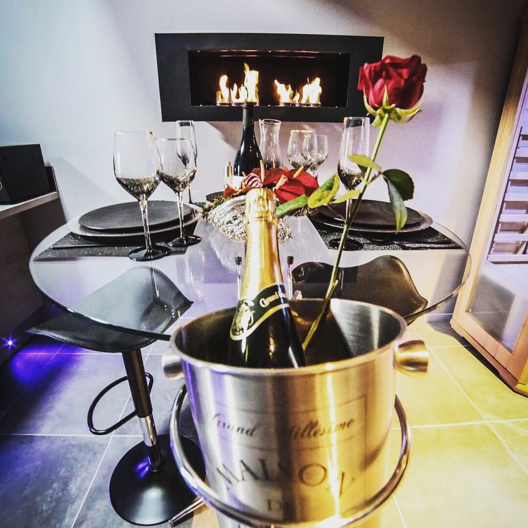 Alcove night: 1 night with breakfast for 2 people and non-alcoholic drinks. Price: €230 Cosy d'alcôve: 1 night with 1 bottle of wine and a choice of 2 home-made pizzas: White (Goat's cheese or 4 cheeses) Red (Reine or Margherita) Breakfast for 2 and soft drinks. Price: €270 Authentique d'alcôve: 1 night with charcuterie platter or cheese platter or charcuterie/cheese mix (includes 1 bottle of wine of your choice), breakfast for 2 and non-alcoholic drinks. Price: €290 Festin d'alcôve: 1 night with 1 bottle of champagne and 1 bottle of wine (your choice) accompanied by a platter of homemade foie gras, a mixed charcuterie/cheese platter (or charcuterie only or cheese only) and a platter of sweet treats (such as mignardises), breakfast for 2 people and non-alcoholic beverages. Price: €350 --- Massages : Hot stone massage: duration 1h, 120€ for 2 people (performed by 2 professional masseuses) --- The pleasure of giving: we offer gift vouchers for the package of your choice.