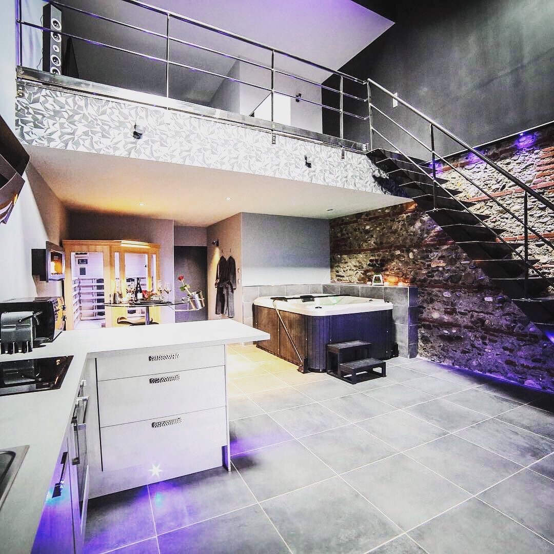 80m² entirely dedicated to your pleasure and well-being. A 3-seater spa (2 reclining and 1 seated) with multicoloured LED lights, ozonator, water heater, etc. An infrared sauna (seating for 3/4), equipped with a CD radio, multicoloured LEDs.... Outside terrace with garden furniture 180x200 king-size bed, wide-screen TV, audio equipment, bathroom with shower and rainfall column. Fully equipped kitchen with fridge, coffee maker, induction hob, crockery, etc.