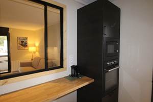 This recently renovated 49 m² 2-room apartment comprises an entrance hall, a living room with a 140 cm double sofa bed, a television, a fully-equipped kitchenette (dishwasher, oven, induction hob, microwave), a bedroom with twin 90 cm beds, a wardrobe, a bathroom and a separate toilet. The floor is covered with laminate parquet. Cellar no. 279, Building C.