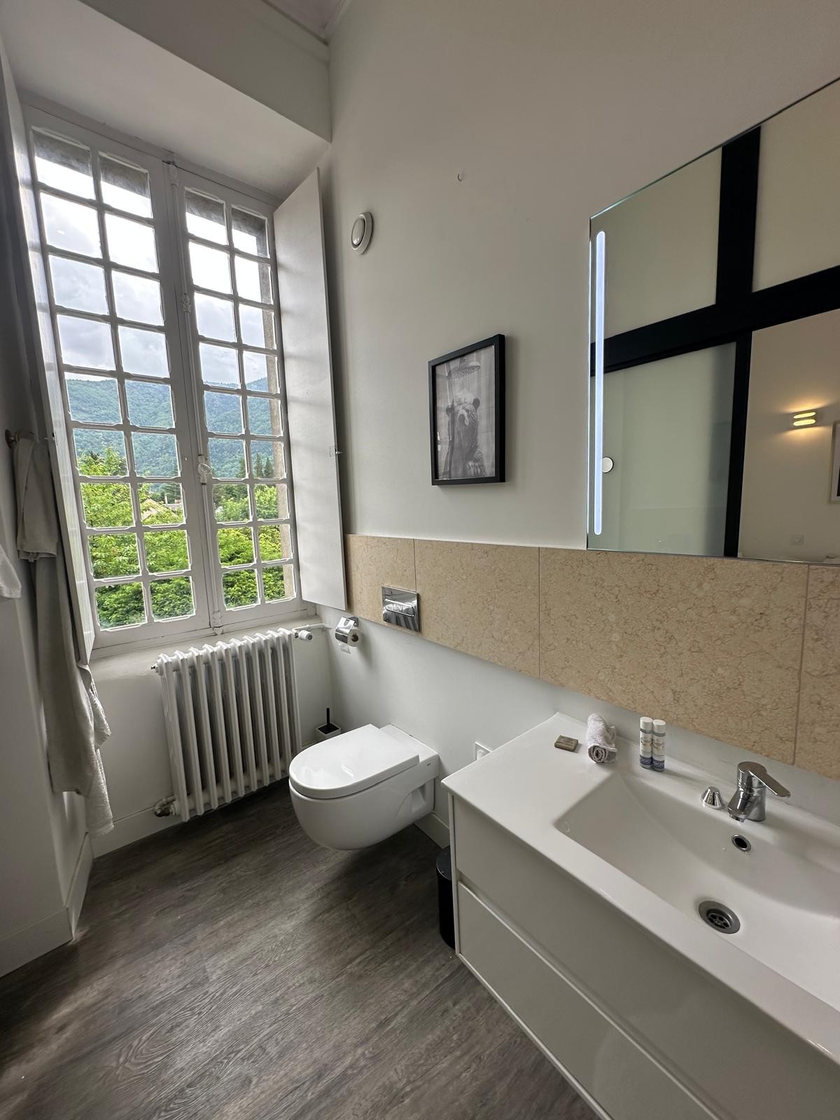 Located in the heart of Bagnères-de-Luchon, the Maison Eugénie flat is exceptional accommodation in a bourgeois building dating from 1858. Renovated in keeping with the original materials, it combines historic elegance with modernity. The accommodation comprises an elegant bedroom, a bright living room with two sofa beds, a fully equipped kitchen and a contemporary bathroom. From the balcony you can enjoy pleasant views of the city and the surrounding mountains. One of Maison Eugénie's major assets is its indoor swimming pool, heated to over 30°C, which is available all year round, offering a truly relaxing moment after a day's skiing, hiking, spa treatment or exploring the local heritage. The flat is in an exceptional location, just 100 metres from the cable car to Superbagnères and within easy reach of restaurants, shops, thermal baths, cinemas and entertainment in the town centre. The municipal golf course, iconic Pyrenean passes (Peyresourde, Aspin) and numerous hiking trails are all within easy reach. La Maison Eugénie caters for customers looking for quality, combining authenticity, comfort and a privileged location in the heart of one of the most beautiful resorts in the Pyrenees.