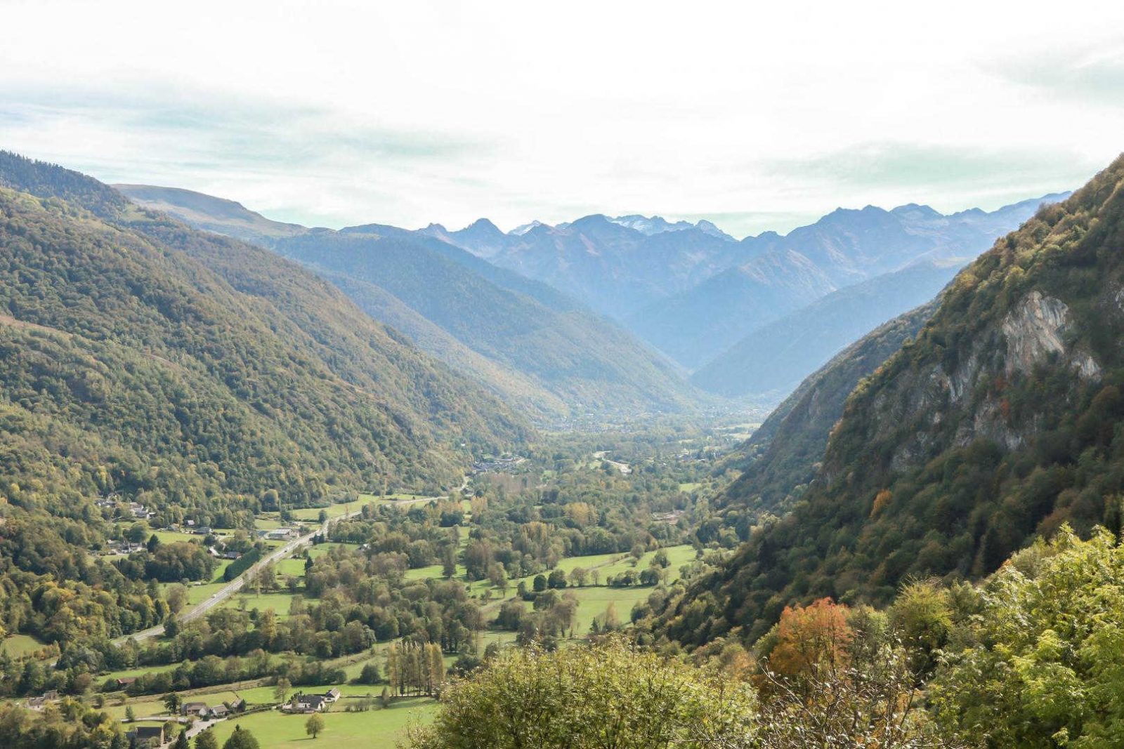 Pleasant stone and slate mountain gîte on the outskirts of Bagnères-de-Luchon in the central Pyrenees with uninterrupted views of the Pyrenean peaks.