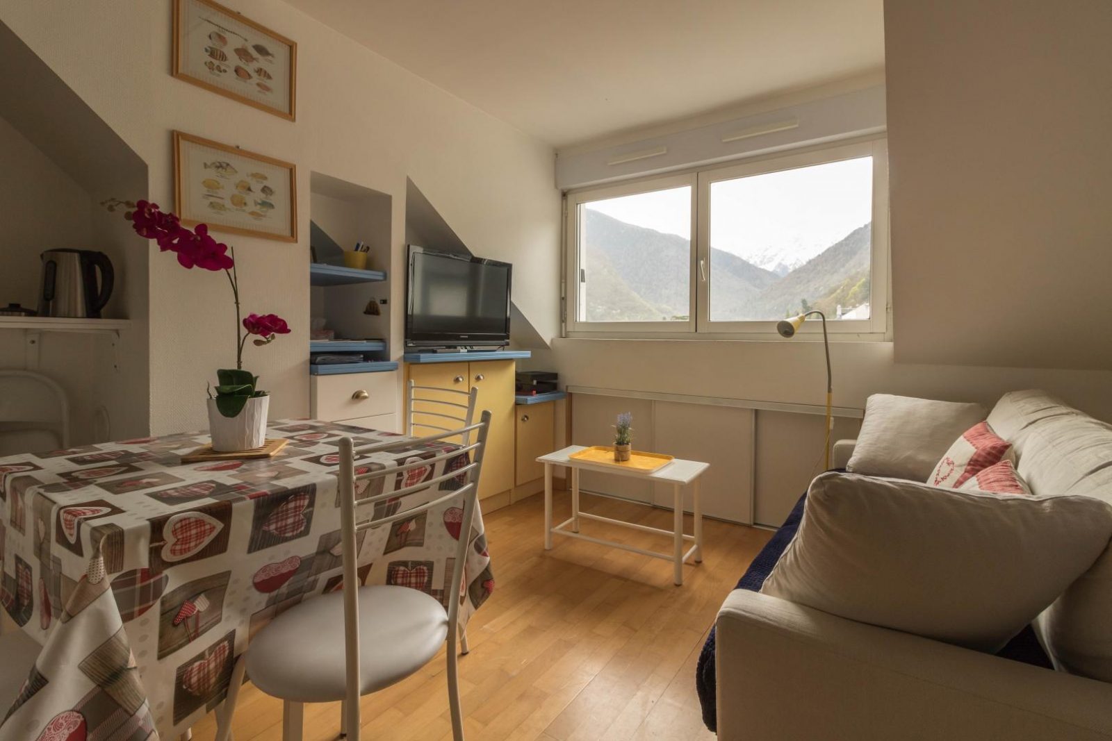 T2 flat for a couple 200 metres from the Luchon-Superbagnères ski resort cable car, ideally located close to the shops and entertainment, thermal baths and the Superbagnères ski resort cable car! You'll enjoy a magnificent view of the Pyrenean mountains and the Vénasque. Whether you're a spa-goer, a visitor or an outdoor enthusiast, don't hesitate... You'll also be 1km from Lac de Badech and the Luchon golf course, 2km from the climbing spot at Saint-Mamet, a village on the Spanish border, 3km from the equestrian centre and 5km from the Antignac base (fishing, canoeing, rafting and paintball), 20 minutes by car from the Lac d'Oô/Pic du Perdiguère hike and Lac du Géry in Saint-Béat-Lez, and 35km from Saint-Bertrand-de-Comminges, one of France's favourite villages, and Montréjeau (lake, station and bus to Luchon). Flat on the 4th floor of the residence, accessible by lift: direct entrance to the living room, small open-plan kitchen, relaxation area with sofa bed. Separate bedroom with sloping ceilings (1 x 140cm double bed), shower room/WC. Electric heating, wifi internet connection. Ground-floor storage room for skis and boots, and possibly 1 or 2 bikes. Ski room. Private parking in the courtyard. Internet Special rates for spa guests: please contact us