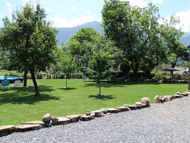 Accommodation with heated pool (5.2 m diameter). This quaint stone-built village house with charming blue shutters is just a short hop from Luchon. During your stay, Hermione, Raffi (a qualified 'International Mountain Leader' guide) and their children will make sure you feel as if you were among friends. Ground floor: dining room, lounge with fireplace (shared with guests and owners). First floor: 'Rose' room (double, 160 cm), family room (twin beds, 2 x 90 cm - can be made up as a double + bunks, 2 x 90 cm). Second floor attic rooms (sloping ceilings): 'Blue' room (triple, 3 x 90 cm), 'Nature' room (twin, 2 x 90 cm with small bathroom/WC with sloping ceiling). Each room has an en-suite bathroom/WC. Tourist tax. Wi-Fi Internet access.