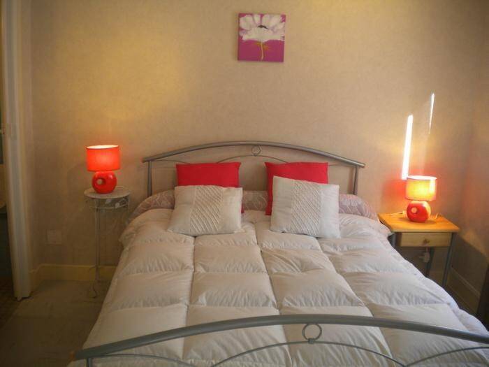 600 m from the new spa complex, garden-level 2-room apartment for 4, south-facing, with terrace, garden and private parking. Fitted kitchen, bright bedroom, Wi-Fi, ski/bike room. Free shuttle bus 100 m away. Reduced rates for spa guests.