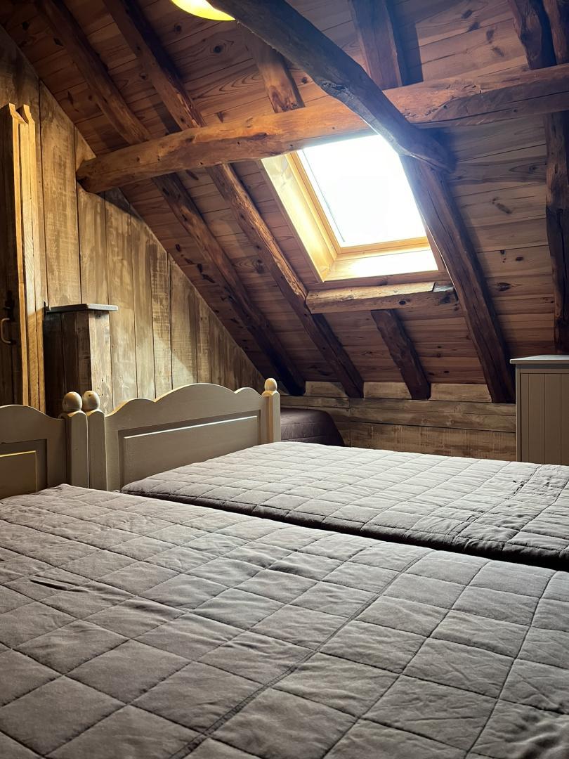 Les Gîtes du Petit Toun are 3 holiday homes (for 5, 6 and 10 people) with a shared heated swimming pool in summer, in the heart of the Pyrenees in the Haute-Garonne! Ideally situated, the hamlet is 3km from the River Pique (fishing), 9km from Bagnères-de-Luchon (thermal baths, skiing, shops, cinema, canyoning, rafting, paragliding, horse riding, hiking, Tour de France pass), 11km from Lac du Géry (guinguette, and Saint-Béat-Lez, as well as the Pyrénées-Hô climbing and rope-climbing centre, 25km from the ski resorts of Le Mourtis, Peyragudes and Bourg d'Oueil, as well as from the Lac d'Oô hiking area and one of France's favourite villages, Saint-Bertrand-de-Comminges. The lake and golf course at Montréjeau are 32km away. Nestling in a small mountain hamlet, this cosy, mountain-style gîte offers magnificent views of the Pyrenees. - Ground floor: living room with kitchen and sitting area, shower room/WC. - First floor: 2 bedrooms with sloping ceilings (1 double bed 140cm) (1 single bed 90cm + 2 twin single beds 90cm). - Outside: private terrace and communal garden. Difficult access in winter (equipment required). Private car park 50m below. Snow cleared twice a day in winter. Electric heating. Tumble dryer. Table tennis, table football and petanque area, reading room and library (shared with the other gîtes). Cleaning included.
