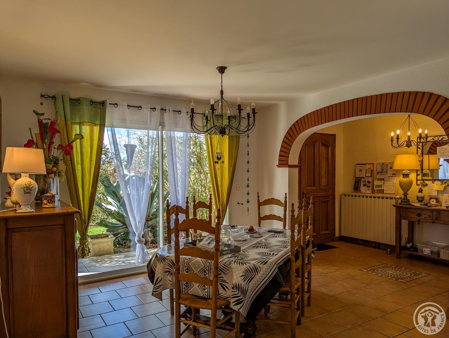 At the gateway to the Pyrenees, in a residential area of Villeneuve-de-Rivière, recent single-storey, south-facing villa, very well equipped and decorated to a high standard. Enclosed grounds of 1000m² with attractive landscaping and two terraces, one of which is south-facing and covered, with views of the Pyrenees, from which you can see the Pic du Gar and the Cagire. Courtyard, garage (electric gates). 2km from the Garonne river (a hiking stage on the ViaGarona, the route to Santiago de Compostela) and 5km from Saint-Gaudens (shops, restaurants, exhibition centre, cinema). Aspet (20km), Luchon (45km) and Saint-Bertrand-de-Comminges 17km. Hiking, activities and visits are available in the surrounding area: Gorges de la Save at 18km (swimming), Montréjeau lake and golf course at 10km, Cardeilhac Forest and Arboretum at 11km, Montmaurin Museum at 15km and Abbaye de Bonnefont en Comminges at 22km. One-storey gîte: entrance hall, fitted kitchen opening onto living room (large-screen LED TV 126cm diagonal), WC with washbasin, shower room (walk-in shower), hairdryer, hair straightener, 3 bedrooms (2 single beds 90cm) (1 double bed 140cm, TV in bedroom) (1 double bed 140cm). Heating with heat pump. Pets accepted (free of charge) subject to conditions agreed with the owners: cats not accepted. Payments by cheque, bank transfer or cash accepted.