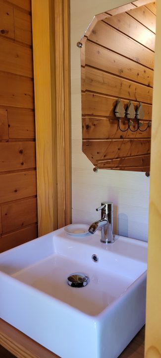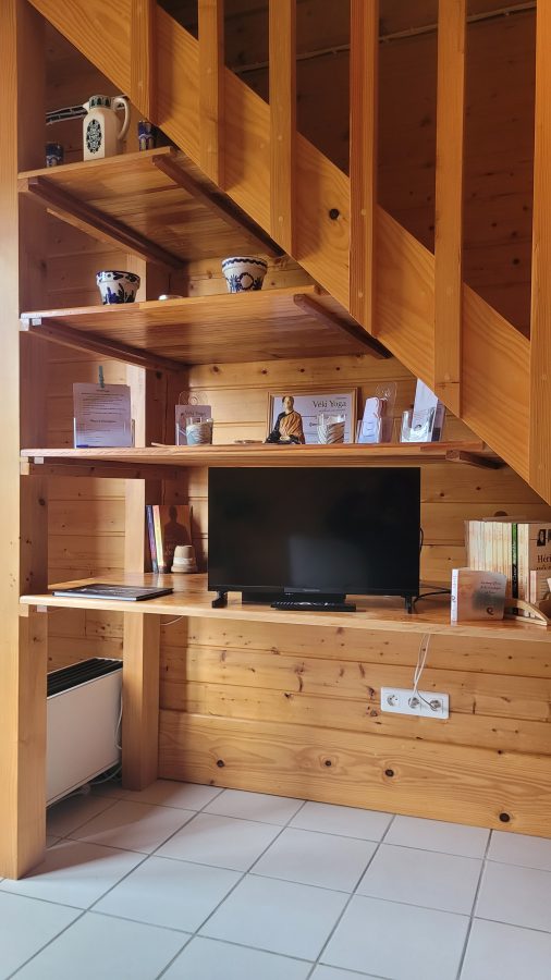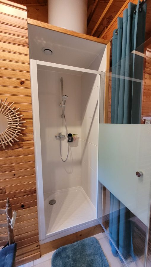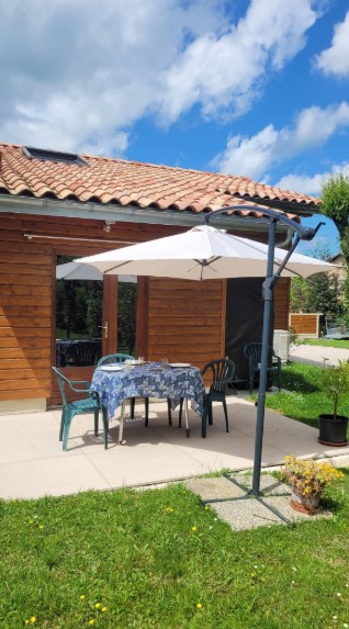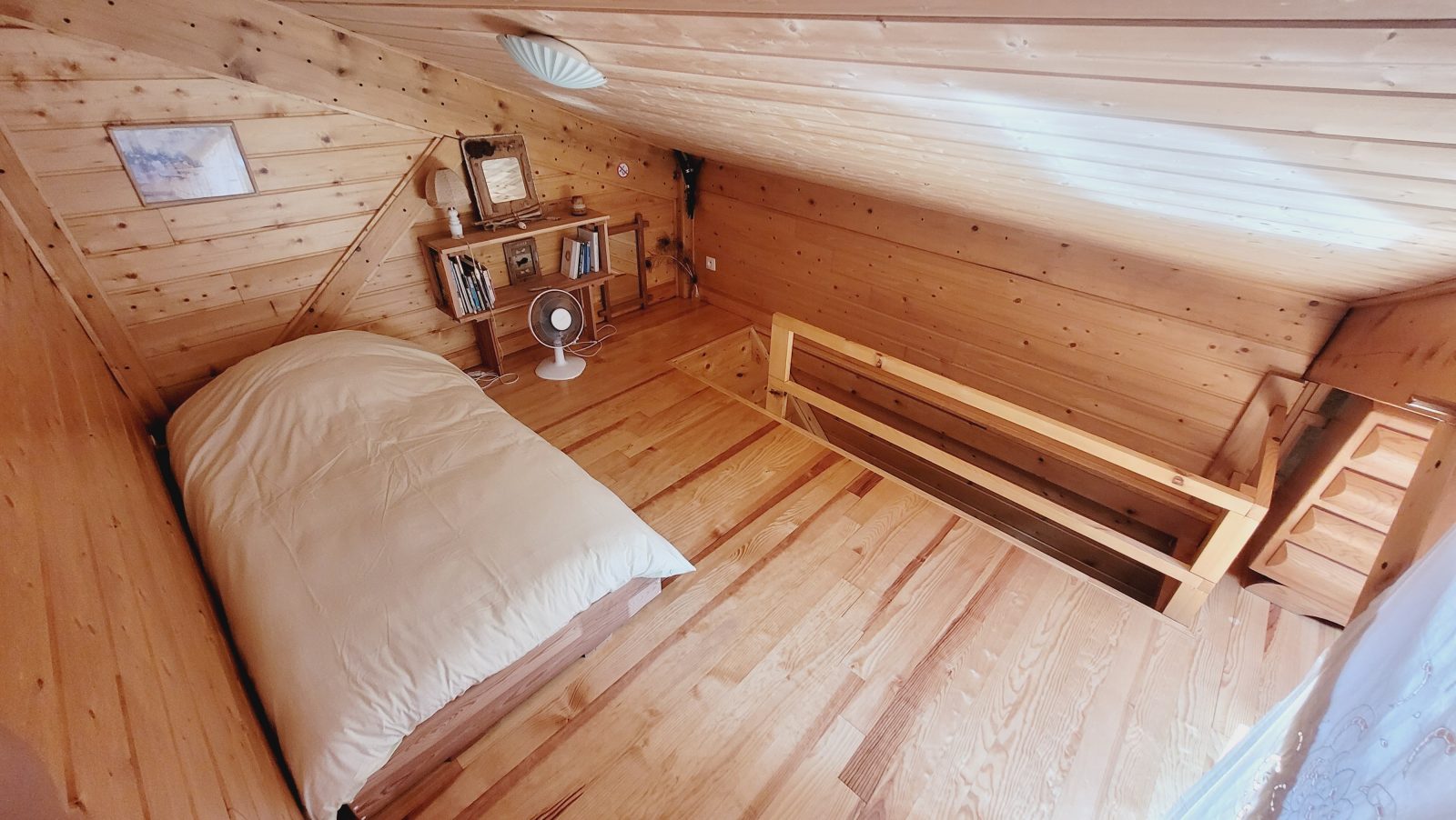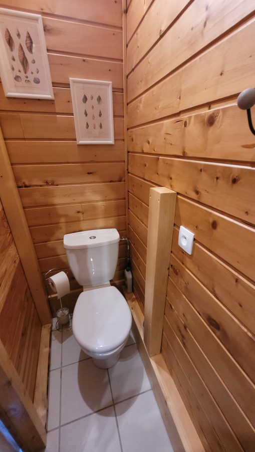 The accommodation is in a quiet location, in an all-wood interior and exterior style. It has a 35m2 room with kitchen, shower and toilet. On the mezzanine level, via the staircase, there are 2 separate sleeping areas with a double bed (140cm) and a single bed (90cm). The maximum height is 1.8m. Outside is a garden with a table where you can eat. In the courtyard, you can park your car opposite the front door. Your car will be parked in our enclosed courtyard. Bicycle reception We warmly welcome cyclists and mountain bikers. There is a secure garage where you can park your bikes in peace and quiet. You'll also find a repair kit and an outdoor washing point.