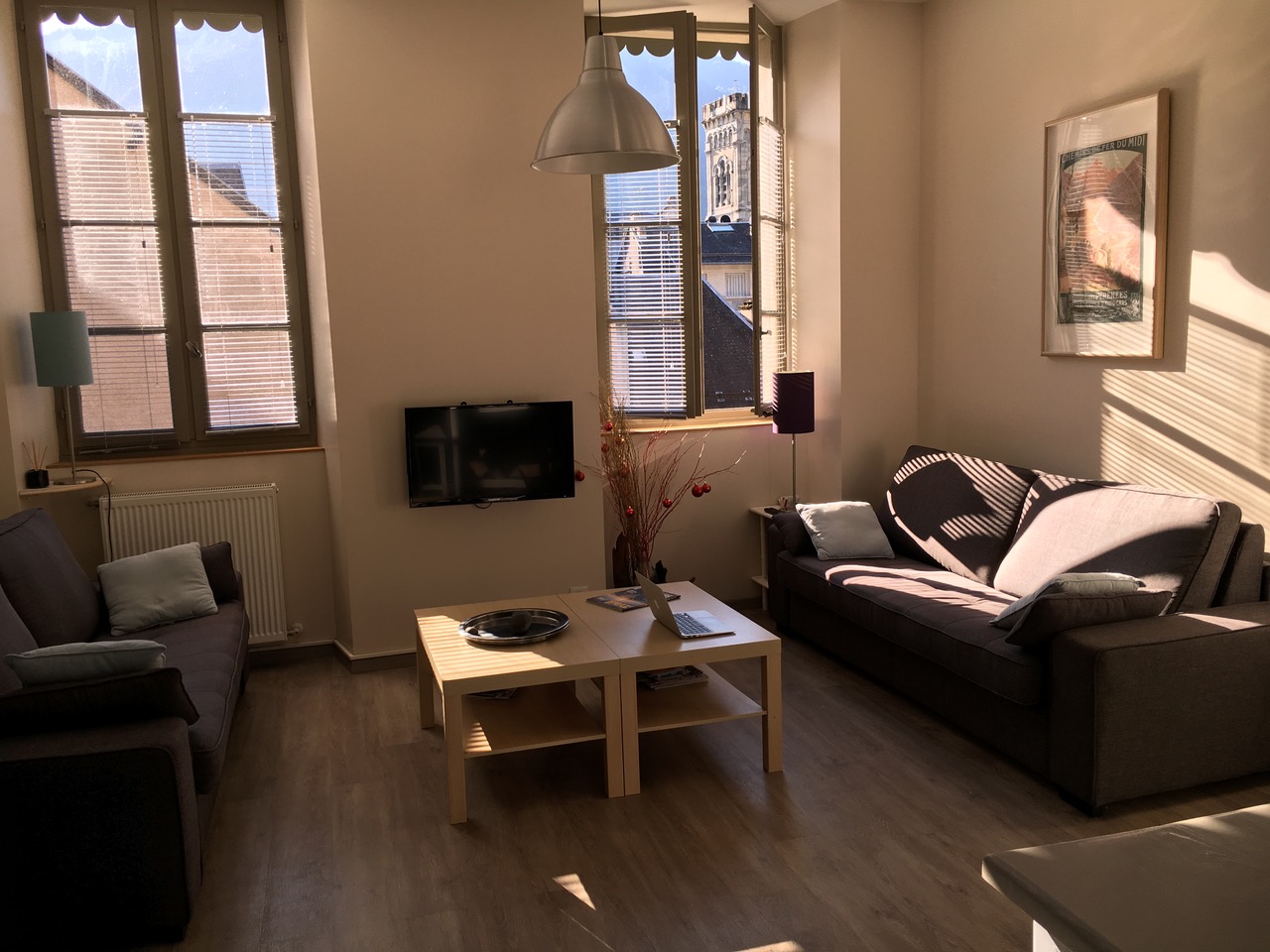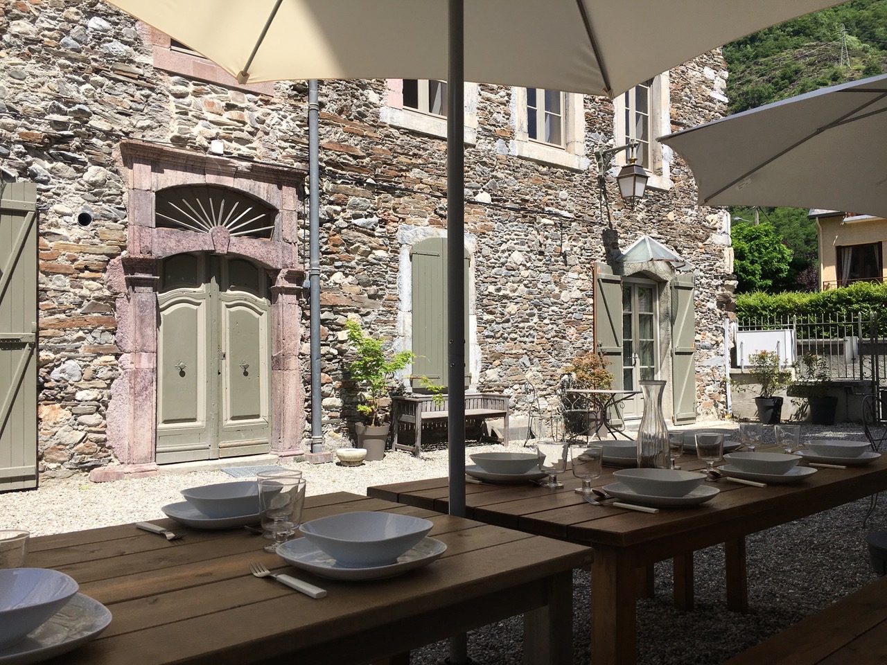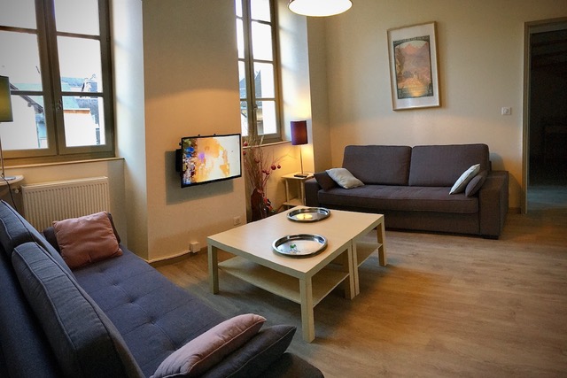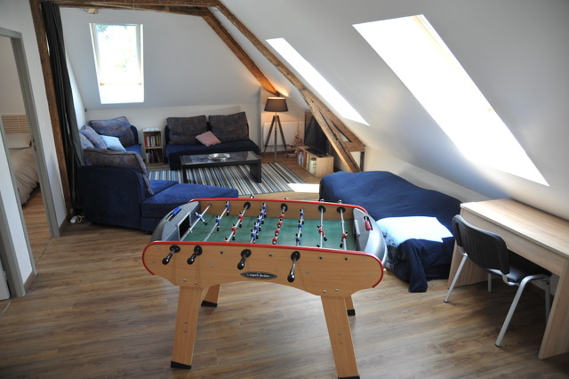Le grand Quayrat is a large duplex apartment of 120 to 170 m2 on the 2nd and 3rd floors (1 bathroom, 1 shower room and 2 separate WCs). In the heart of Luchon Superbagnères, come and spend your next mountain holiday in our 18th century building, with its traditional Pyrenean architecture, completely renovated. . Find yourself in a bright, spacious duplex apartment in the heart of Luchon, with views of the mountains. A warm, comfortable flat where parents, children and grandchildren can get together and share moments of real conviviality. This large duplex apartment on the 2nd and 3rd floors can be adapted to suit your needs and level of comfort. There are 4 possible configurations: . 95m2 configuration (up to 10/12 people) it includes a spacious living room, comprising a lounge/dining room opening onto a fitted kitchen (oven, microwave, dishwasher, washing machine, hob, fridge/freezer) > 3 bedrooms (3 x 160cm beds) with wardrobes > 1 "dormitory" area (4 x 90cm beds) > 1 sofa bed in the lounge > 1 bathroom > 1 shower room > 2 separate WCs. Capacity 120m2 (up to 14 people) (school holidays only). In addition to the duplex, there is a communicating and independent studio comprising : A living room with a sofa bed > 1 kitchen - dining room > 1 shower room, 1 wc. 150m2 configuration (up to 16 people). In addition to the 120 configuration, there is a large connecting TV lounge with exposed beams, a large convertible corner sofa and a large-screen TV. 170m2 configuration (up to 20 people). In addition to the 150m2 configuration, there are 2 bedrooms with 140cm beds. This configuration makes it possible to create a very large duplex comprising: > 5 real bedrooms with 5 double beds, > 1 dormitory with 4 single beds, > 3 sofa beds, > 1 bathroom, 2 shower rooms, 3 WCs The entire duplex is furnished with recent, quality furniture and equipped with new everyday necessities (crockery, kitchen utensils, small electrical appliances, etc.). Specific equipment: > 2 cots and 1 high chair are available > Flat-screen TV and free wifi > 1 table football > 1 table tennis table in the outdoor amenity area. Prices shown do not include charges.
