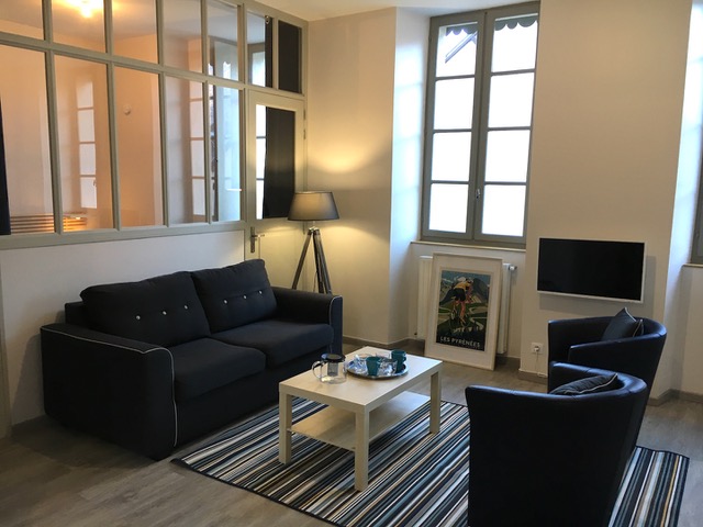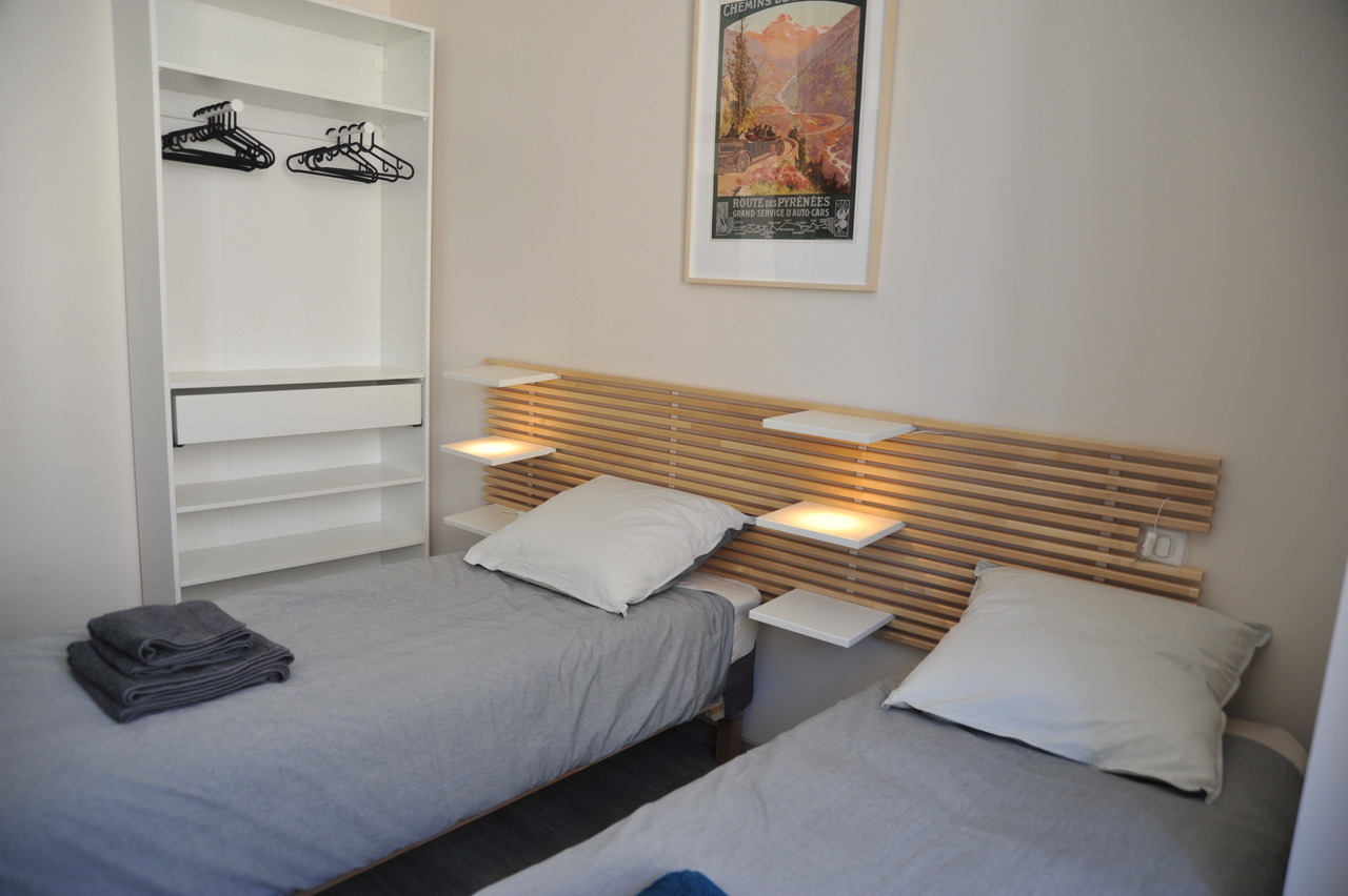 In the heart of Luchon-Superbagnères, come and spend your next mountain break in our fully renovated 18th-century building with traditional Pyrenean architecture. Le Spijeoles is a luxury flat with plenty of natural light and a certain refinement. It will appeal to those who like comfort in a contemporary, uncluttered decor. You'll love staying here and taking your time in small groups, extending breakfasts or dinners. This luxury T3 is located on the 2nd floor of the residence. It offers 54m2 of living space divided into 3 main rooms: > A spacious, light-filled lounge-dining room with a 140cm sofa bed, opening onto a fully fitted and equipped kitchen (oven, extractor fan, hob, dishwasher, washing machine, all brand new). > 2 bedrooms, each with 1 double bed (160cm) that can be converted into 2 single beds. > A lovely, light-filled shower room with vanity unit, large shower and wall-hung WC. This renovated flat is fitted out with recent furniture, household appliances, crockery and bedding (slatted base, mattress, duvets, pillows, etc.) that are virtually brand new. Its telescopic table can accommodate up to 12 people for meals or team meetings during company seminars... Prices shown do not include charges.