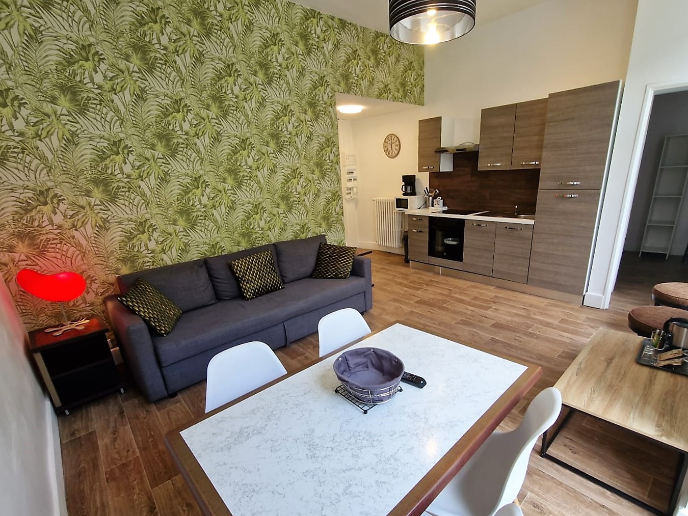 At the foot of the Pyrenees, a stone's throw from the town centre and the cable car - all comforts and a warm welcome. Close to shops and restaurants. Bed linen, towels and end-of-stay cleaning included. This fully-equipped one-bedroom apartment has a spacious living room with high ceilings, a bedroom with a double bed and comfortable new bedding, a sofa bed, a well-equipped kitchen with a 4-burner ceramic hob, electric oven, fridge-freezer, coffee machine with permanent filter, microwave, plenty of crockery and cooking utensils, dressing room, flat-screen TV, bathroom with shower, vanity unit with mirror, hairdryer and balcony. Lift, digicode. Hoover, iron and ironing board on request. Professional washing machine and tumble dryer in the basement. Free secure bike room. Free access to sports facilities. High chair and cot available on request and subject to availability. Continental breakfast available in a room on the ground floor (reservation required).