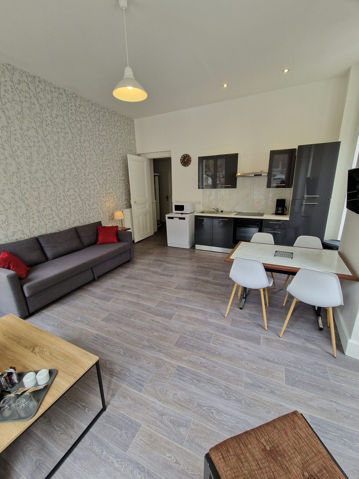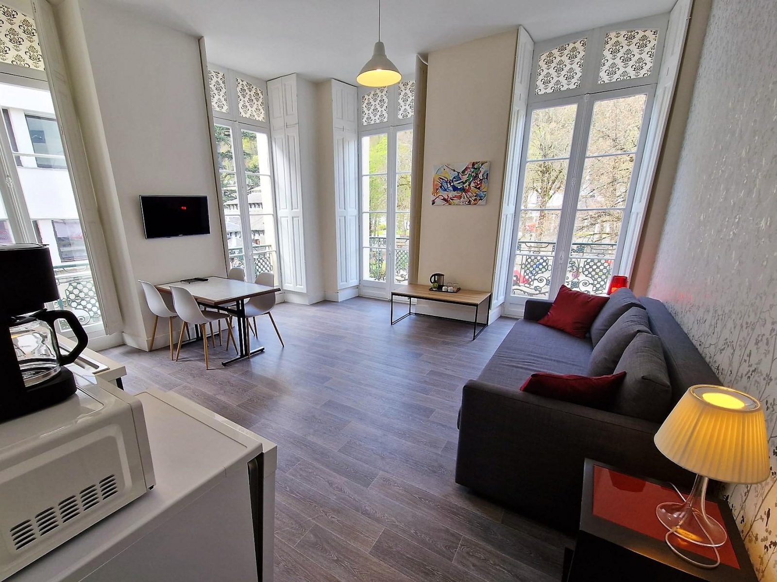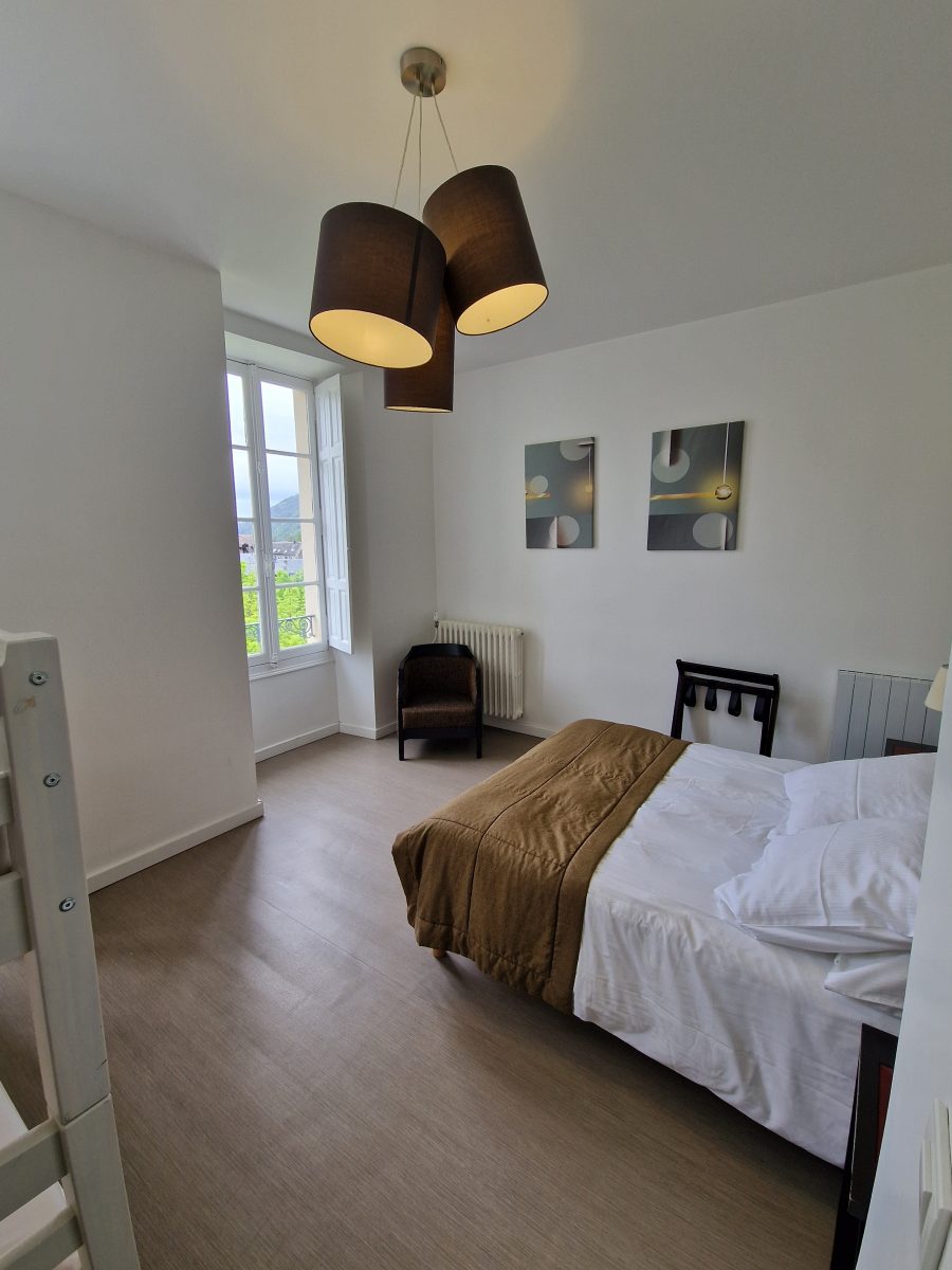 At the foot of the Pyrenees, a stone's throw from the town centre and the cable car - all comforts and a warm welcome. Close to shops and restaurants This fully-equipped T2+ offers a spacious living room with high ceilings, a bedroom with a double bed, a bunk bed with comfortable new bedding, a sofa bed, a well-equipped kitchen with a 4-burner ceramic hob, an electric oven, fridge-freezer, coffee machine with permanent filter, microwave oven, plenty of crockery and cooking utensils, dressing room, flat-screen TV, bathroom with shower, vanity unit with mirror, hairdryer. Bed linen, towels and end-of-stay cleaning are included. Lift and digicode. Hoover, iron and ironing board on request. Professional washing machine and tumble dryer in the basement. Free secure bike room Free access to sports facilities High chair and cot for your baby on request and subject to availability Continental breakfast available in a room on the ground floor by prior arrangement.