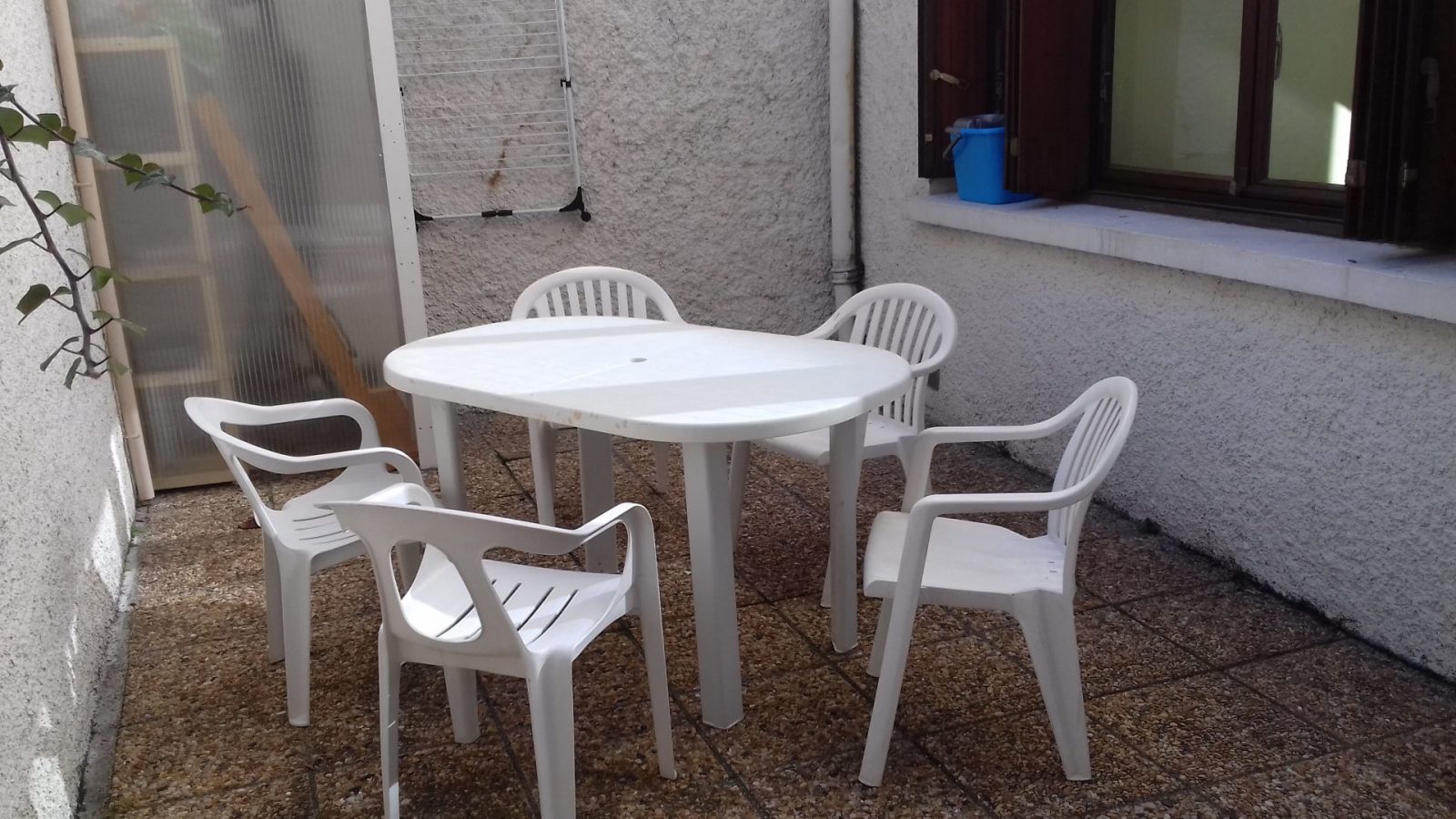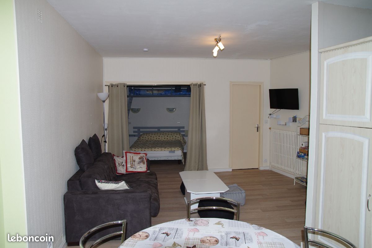 Studio located in the town centre. It is equipped with a living room kitchenette with combi oven, microwave and traditional oven. Dishwasher, traditional Senseo coffee machine or pods, kettle, toaster, raclette set. A sleeping area with 1 double bed (140cm) and a mezzanine with 1 single bed (90cm), cupboard. Cot and high chair available. Large bathroom with WC and cupboard. Private enclosed courtyard of 20m2 with garden furniture. Shed with 2 bicycles available. Board games and books available. Linen hire available. Free parking nearby.