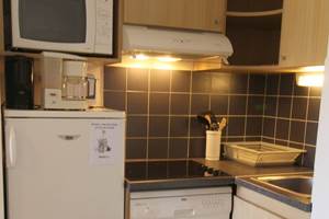 This flat comprises an entrance hall with a fully-equipped kitchenette (ceramic hob, dishwasher, microwave, filter coffee maker) opening onto the living room with a sofa bed (pull-out bed), television and French windows opening onto the balcony. A bedroom with a 160x200 bed and French windows leading onto the balcony. A hallway with a cupboard. Separate bathroom and WC. Linoleum floor. Private parking space. Fibre optic Wifi.