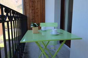T2 flat for 4 people, 35m2, on the 2nd floor with lift, located halfway between the thermal baths and the town centre, facing north and with a balcony.