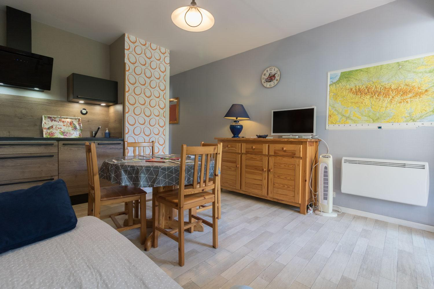 Ideal for cures: 3 weeks at 750 euros Many activities are within walking distance and less than 10 minutes from the flat: the Pique river for fishing is at the bottom of the flat, the thermal baths, the cable car to the Superbagnères resort, the Tourist Office, the guides' office (water sports, hiking and other activities on offer), the cinema, the swimming pool, the casino park and the best restaurant in Luchon, "Le Lova". Lake Badech, the aerodrome (paragliding, gliding) and the equestrian centre are a 20-minute walk away.By car, you'll also be on the doorstep of a multitude of adventures and discoveries: the ski resorts of Peyragudes (downhill skiing, cross-country skiing and mountain biking, Col de Peyresourde on the Tour de France), Bourg d'Oueil and the Lac d'Oô hike (which gives access to the Pic de Perdiguère at 3222 metres for the more sporty) are 15km away; the Vallée du Lys hikes and the Hospice de France hike are 11km away; the Spanish Val d'Aran and Bossost, as well as the Pyrénées-Hô climbing and accrobranches park, are 20km away; Saint-Bertrand-de-Comminges (Plus Beaux Villages de France and Grand Site Occitanie) is 33km and Montréjeau (train station and swimming lake) is 40km away. Flat on the first floor of a residence without lift, accessible from the car park on Rue Adrien Bochet or Boulevard Henri de Gorsse, and arranged as follows: entrance hall, separate WC, bedroom (1 double bed 140*190cm), shower room and living room with fitted kitchen, dining area and sitting area (sofa bed for 2 people 140*190cm). The living room opens onto the terrace.
