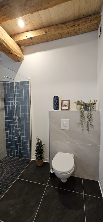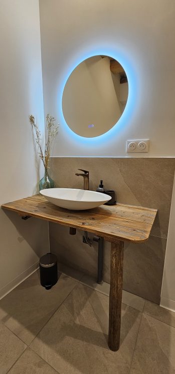 L'Evasida for 2 people: this vast 28 m² room has high ceilings and lovely old exposed beams. It has a 160cm double bed, a 125cm television, a small table and two toadstool armchairs. It also has a large en suite shower room with walk-in shower, washbasin and WC. It has its own entrance to the south-facing garden and access to the common room from inside the house. L'Escapada for 2 people: this vast 31 m² room, accessible for PRM, has very high ceilings and pretty old exposed beams. It has a 160cm double bed, a 125cm television, a small table and two toadstool armchairs. It also has a large private bathroom with shower, washbasin and WC. It has the space required to accommodate a wheelchair. It has its own entrance to the south-facing garden and access to the common room from inside the house. The wheelchairs must use the outside of the house to reach the common room, via a specially designed wooden ramp on the terrace. on the terrace level. As a bonus, you'll have free access to our large 70 m² common room with giant screen and spacious lounge, tables for up to 20 guests, table football and darts, karaoke, espresso coffee machine, sports magazines and board games, library... Outside, a large 90 m² wooden terrace awaits you, with a lovely dining area, barbecue and comfortable garden furniture. There's also an in-ground swimming pool with sun loungers and sun loungers, set in a lush, wooded garden. For sports enthusiasts, there are two bike sheds, secured by padlock and camera, and a bike workshop. Finally, for moments of well-being, a massage room and outdoor sauna are available on reservation. Catering available on request (external service provider).