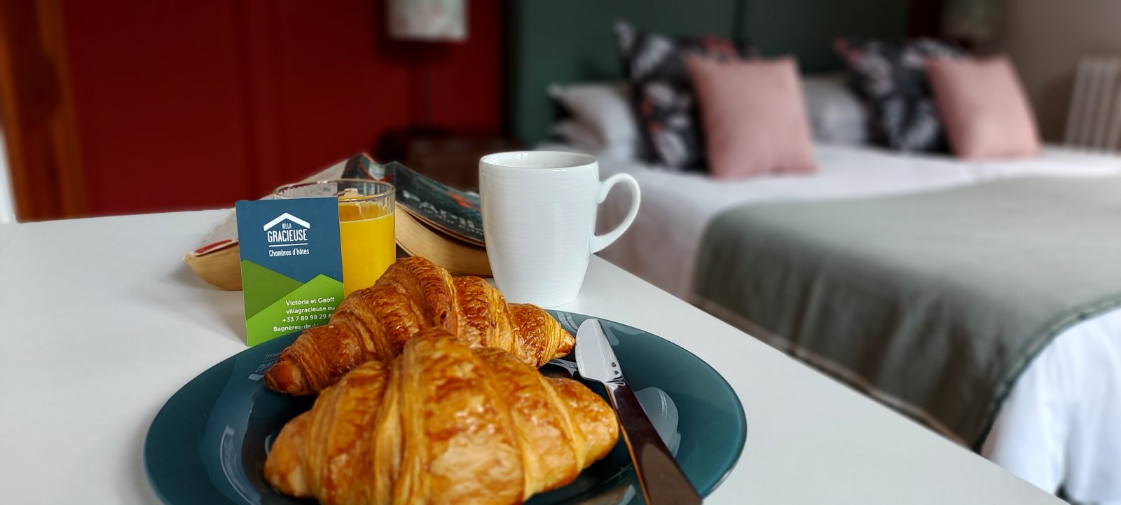 All our rooms and suites have their own bathroom. Each room has superb views over the surrounding mountains to the Hospice de France valley and the Pic de Sauvegarde. Your day begins with a hearty breakfast to get you started on your journey to the mountains. You can then enjoy dinner (starter, main course and dessert, wine included) made with local ingredients or even grown in our own garden, where possible. All dishes are prepared the same day in our kitchen. If you wish, you can also bring your own picnic, which we will prepare for you. For the comfort of our guests, we are unable to cater for pets and smoking is not permitted.