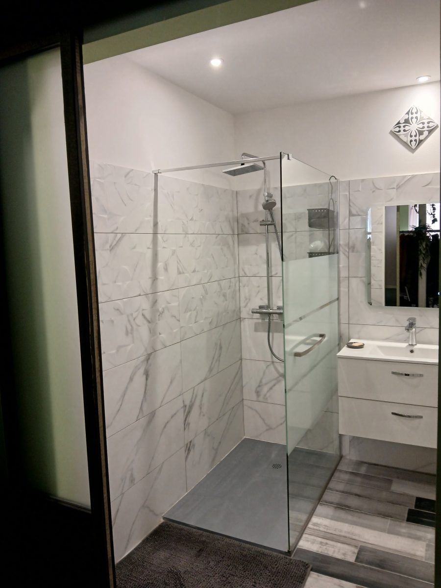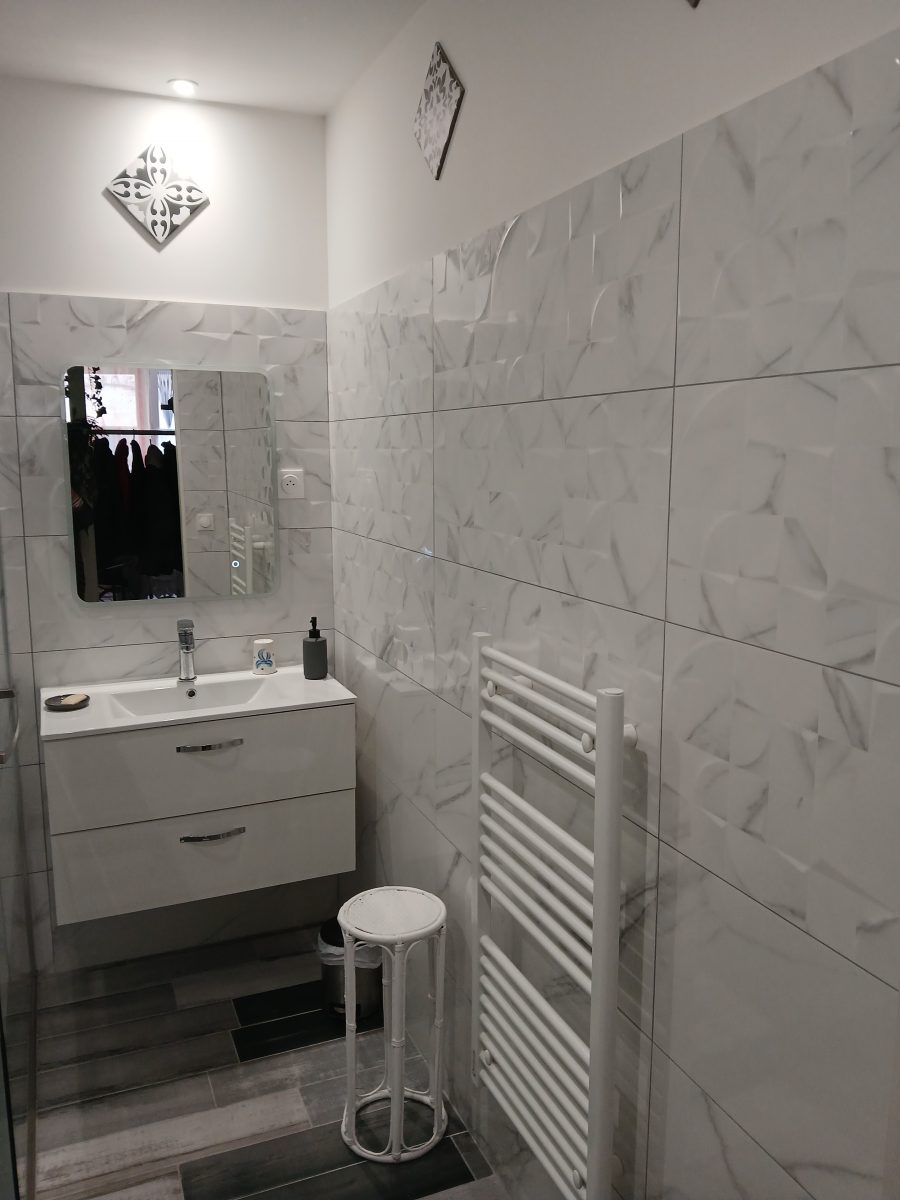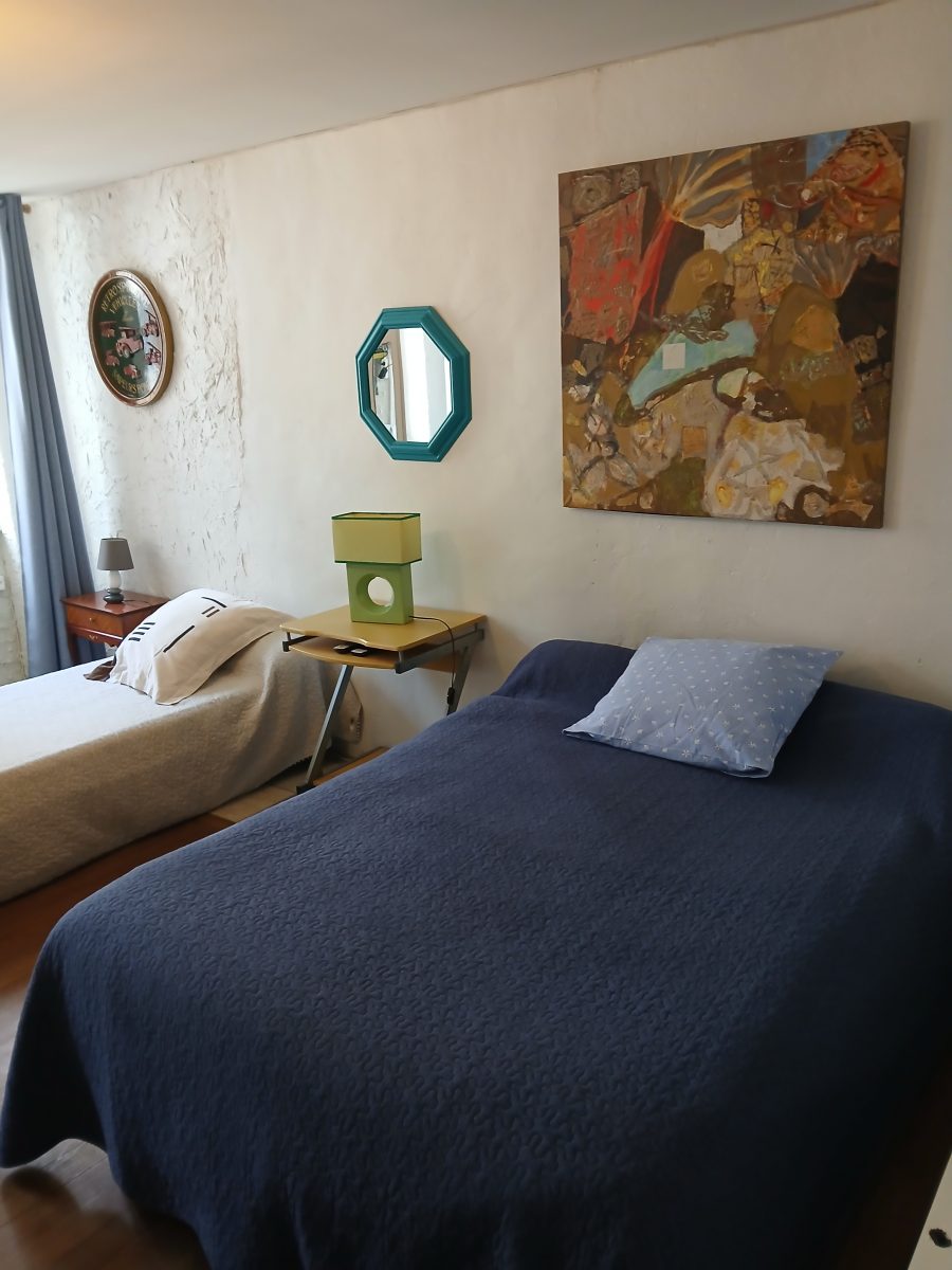 On the first floor is your large bedroom with 1 double bed and 2 single beds combined with contemporary decor. A private bathroom with shower and washbasin. Separate WC. A fitted kitchen and dining area in the living room. On the ground floor there is a closed garage where you can leave your motorbike, bicycles, luggage, etc. Shops and restaurants in the village.
