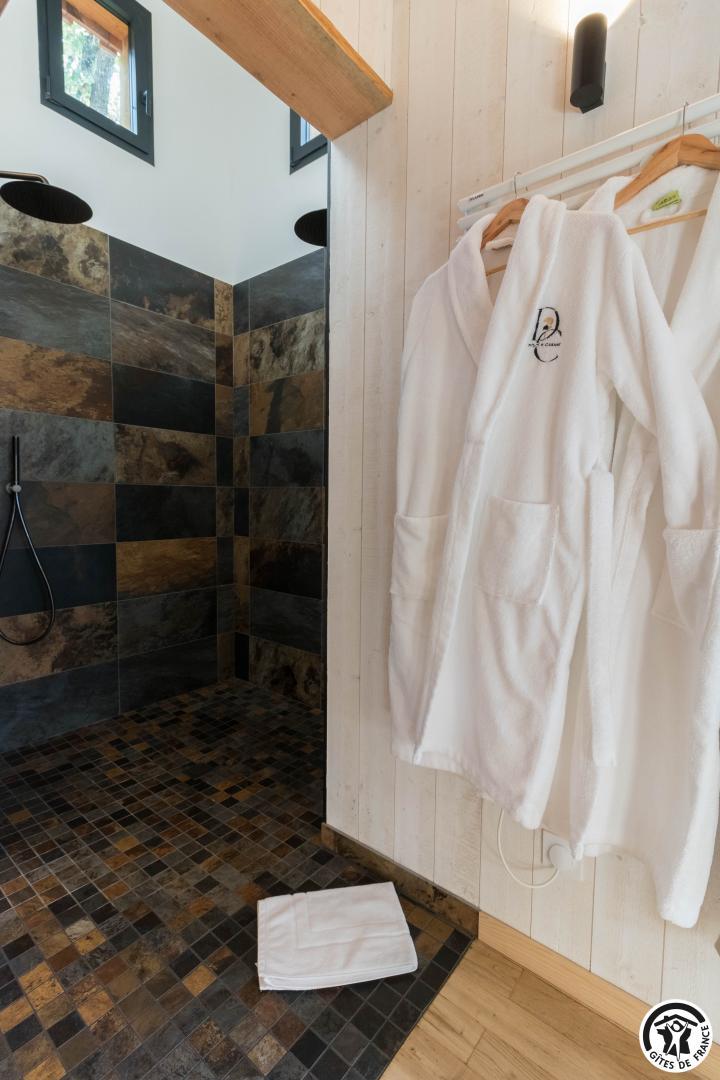 A dream come true, that's what awaits you at Dolce et Cabane. Enchanting, magical, incredible... there aren't enough adjectives to describe the experience you're about to have here. A haven of peace set in lush greenery, this is the ultimate luxury getaway offered by the owners. They have used local craftsmen and noble materials and have integrated their cabins perfectly into the environment. In the heart of an enchanted forest, these buildings will allow you to appreciate nature at its true value: hundred-year-old trees will cross your terrace and the bay windows will give you the sensation of showering in the woods. The wellness facilities (spa and sauna) will bring you the ecstasy you've been waiting for. And what about the additional services: romantic evening, brunch and late check-out, aperitif plank... L'Écrin is calm and pleasure, a surprising cabin in harmony with nature. Jacuzzi, hanging net and even 2 single beds, to fill you with happiness. L'Insolite: what will you choose? A glass of champagne in the jacuzzi, a relaxing moment in the sauna or a bubble bath in the bath? A night in the Étoilee, and you won't be able to do without the sliding bed where you can touch the Big Dipper with your finger. And finally, the Irrésistible, the icing on the cake: shaped like a butterfly inside, with jacuzzi, sauna and hanging net! Each cabin has the following basic equipment: a 160*200cm double bed, a shower room (double shower), a WC, a jacuzzi, a dining area, a sitting area and a kitchenette (wine cellar, fridge and microwave). Homemade, seasonal breakfast is served in a basket that you pull with a pulley! Things to see and do in the area: Toulouse is 47km away, the airport is 35 minutes away, Muret is 30km, the Source Wake-Board in Carbonne is 10km, Lac de Savères is 6km and Tépacap is 12km.