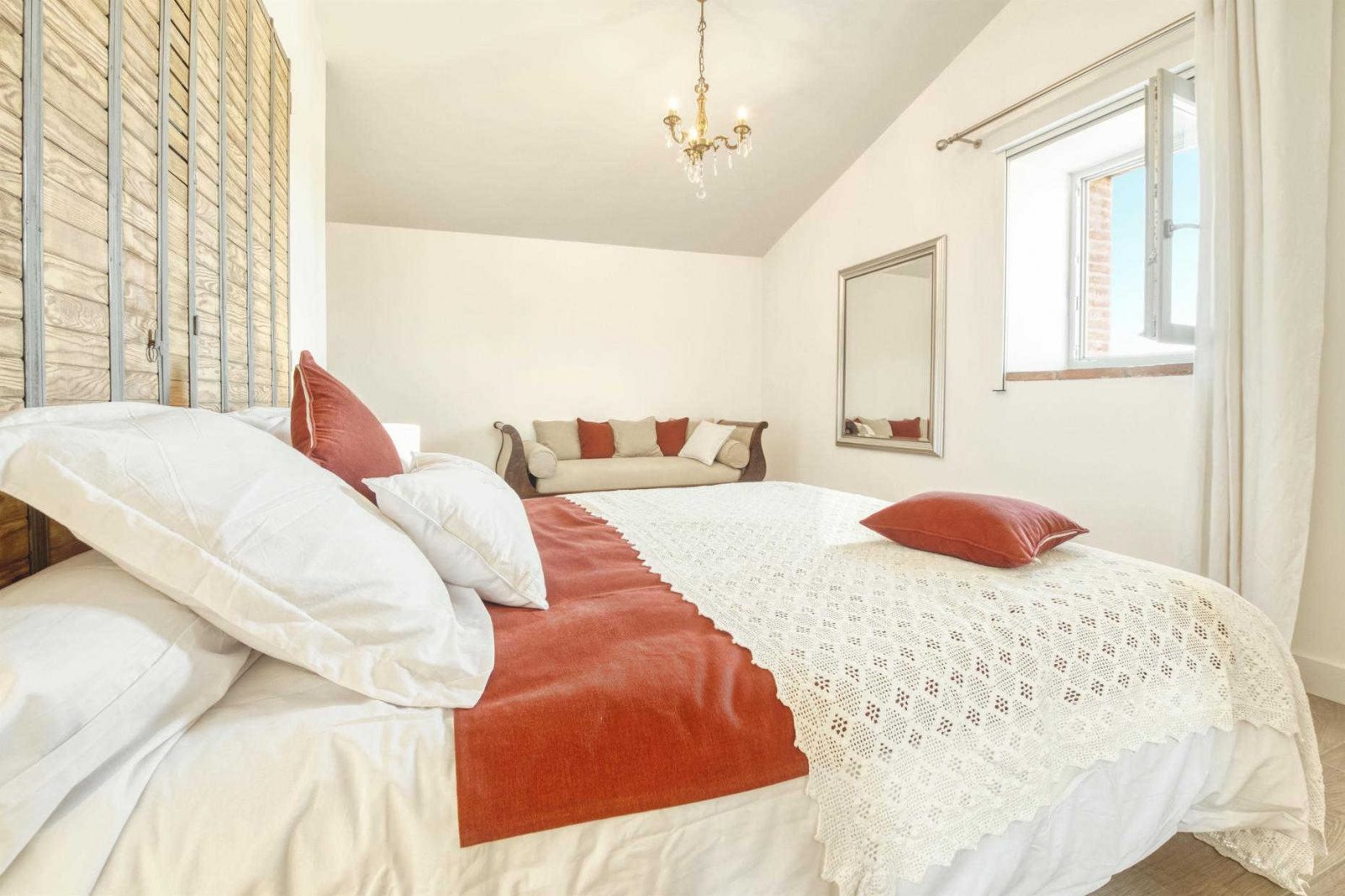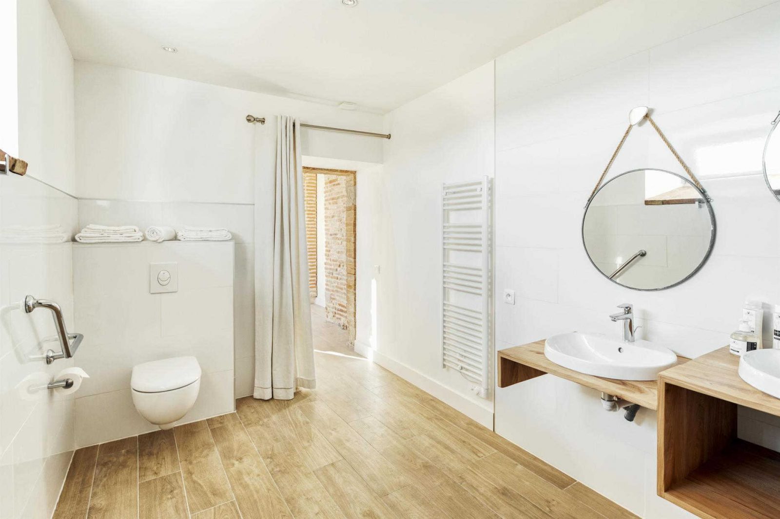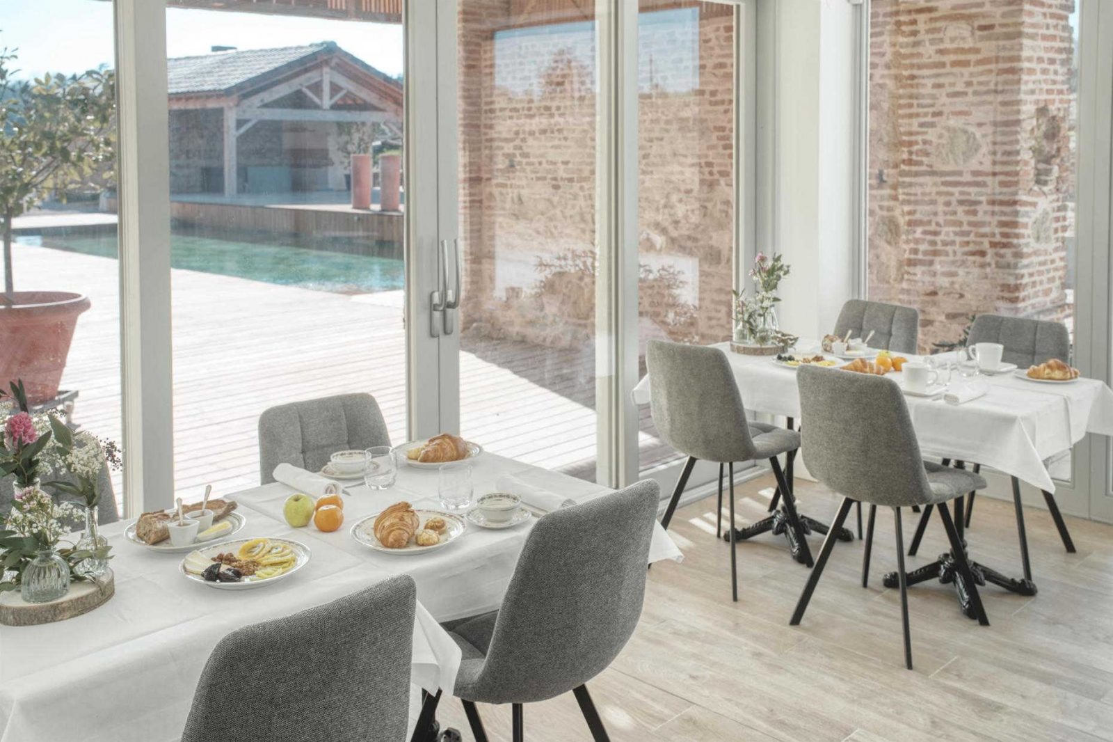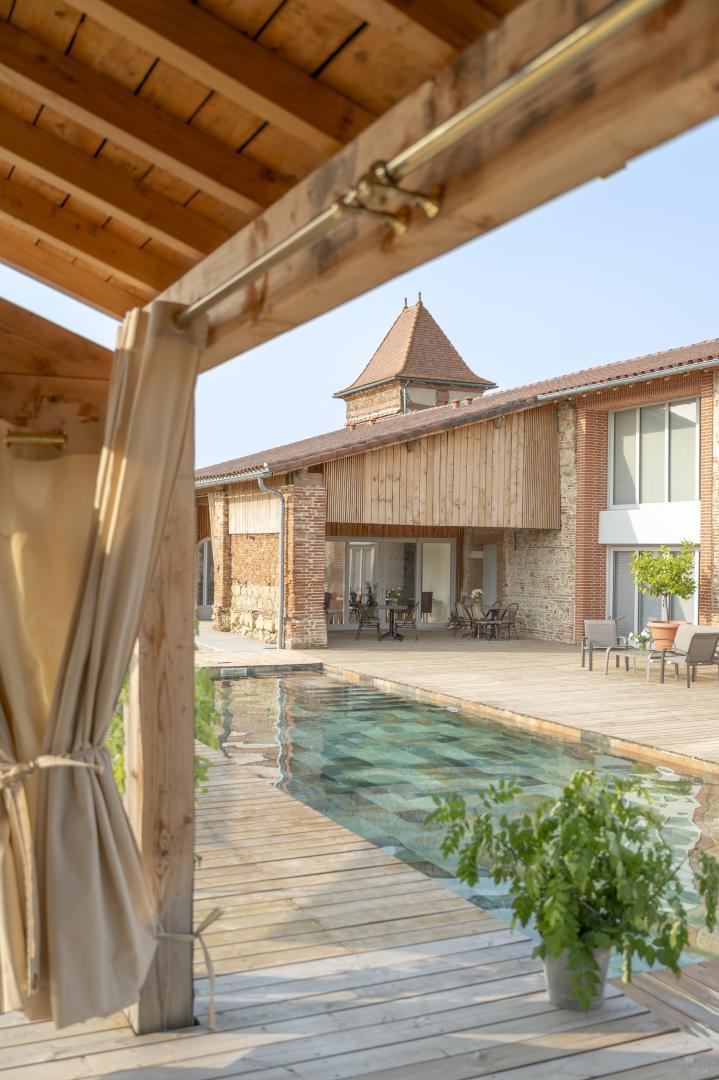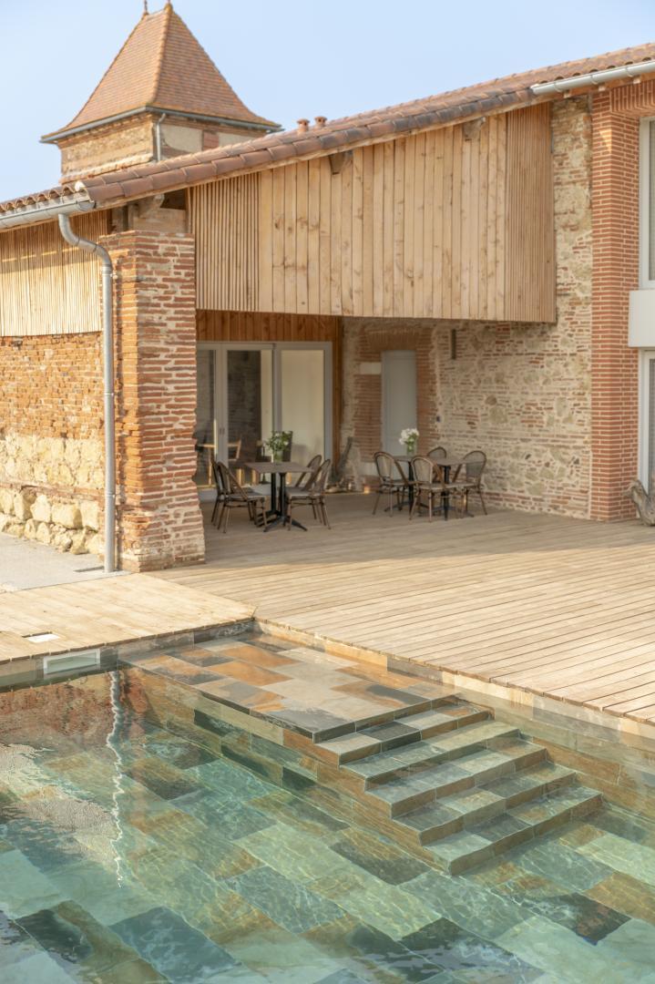 Domaine d'Escons is an 18th-century farmhouse flanked by two towers, which Anne and her family have given a new lease of life by restoring it with passion. But it's also a new life for Anne, who has set up as a farmer and offers to welcome her customers on site, in 4 beautiful guest rooms and a farmhouse inn where the products of the farm will be served. She'll be delighted to show you around... Everything here has been designed with relaxation in mind: heated swimming pool (alarm), open from mid-May to the end of September, solarium, 3-seater jacuzzi, large shaded terrace. When it comes to leisure activities, Anne has also thought of everything: bowling green, volleyball and badminton courts, bike hire. Around 40 km from the centre of Toulouse and easily accessible from the A64 motorway, Domaine d'Escons will delight couples looking for a rural getaway, families with children and business people, who will find a seminar room for 12 people and an auberge for meals. Anne's commitment to an eco-responsible approach is reflected in every aspect of the house: use of local materials, renovated antique furniture, local sourcing, rainwater harvesting... The chic, understated decor of the house features natural materials and materials made in France. - On the ground floor: a communal lounge that can be used as a seminar room, and a farmhouse inn where breakfasts and evening meals are served. Chambre Les Senteurs du Jardin, accessible to people with reduced mobility (1 double bed (160cm), shower room/WC). - upstairs, 3 bedrooms: Le Pigeonnier Romantique (1 double bed (160cm), shower room, separate WC), Les Ailes du Moulin (1 double bed (160cm), possibility of an extra single bed (90cm), shower room, separate WC) and Le Soleil Levant (2 twin beds (90cm), possibility of extra single beds (90cm), shower room, separate WC).