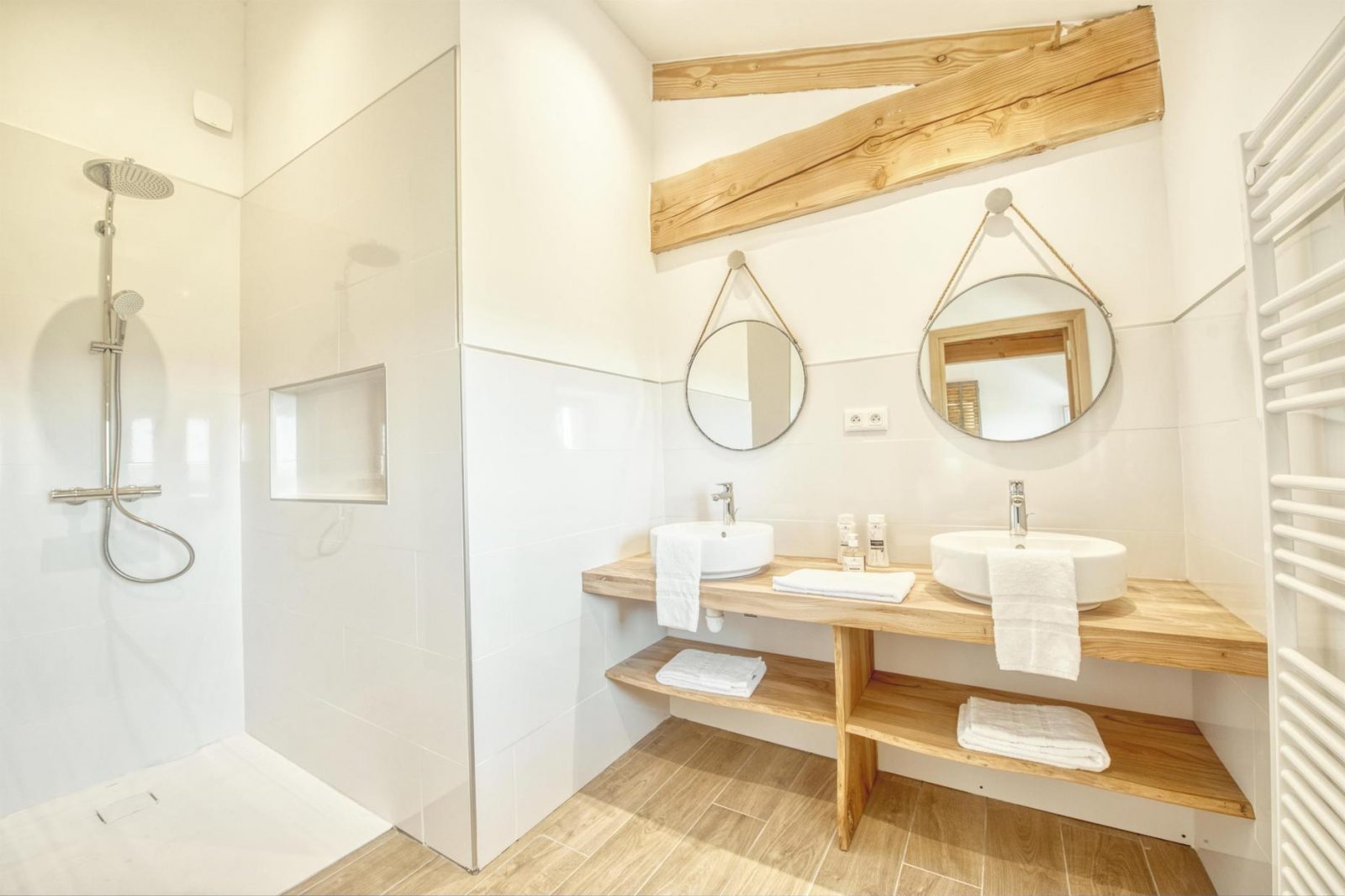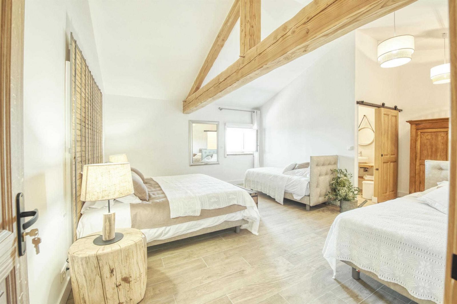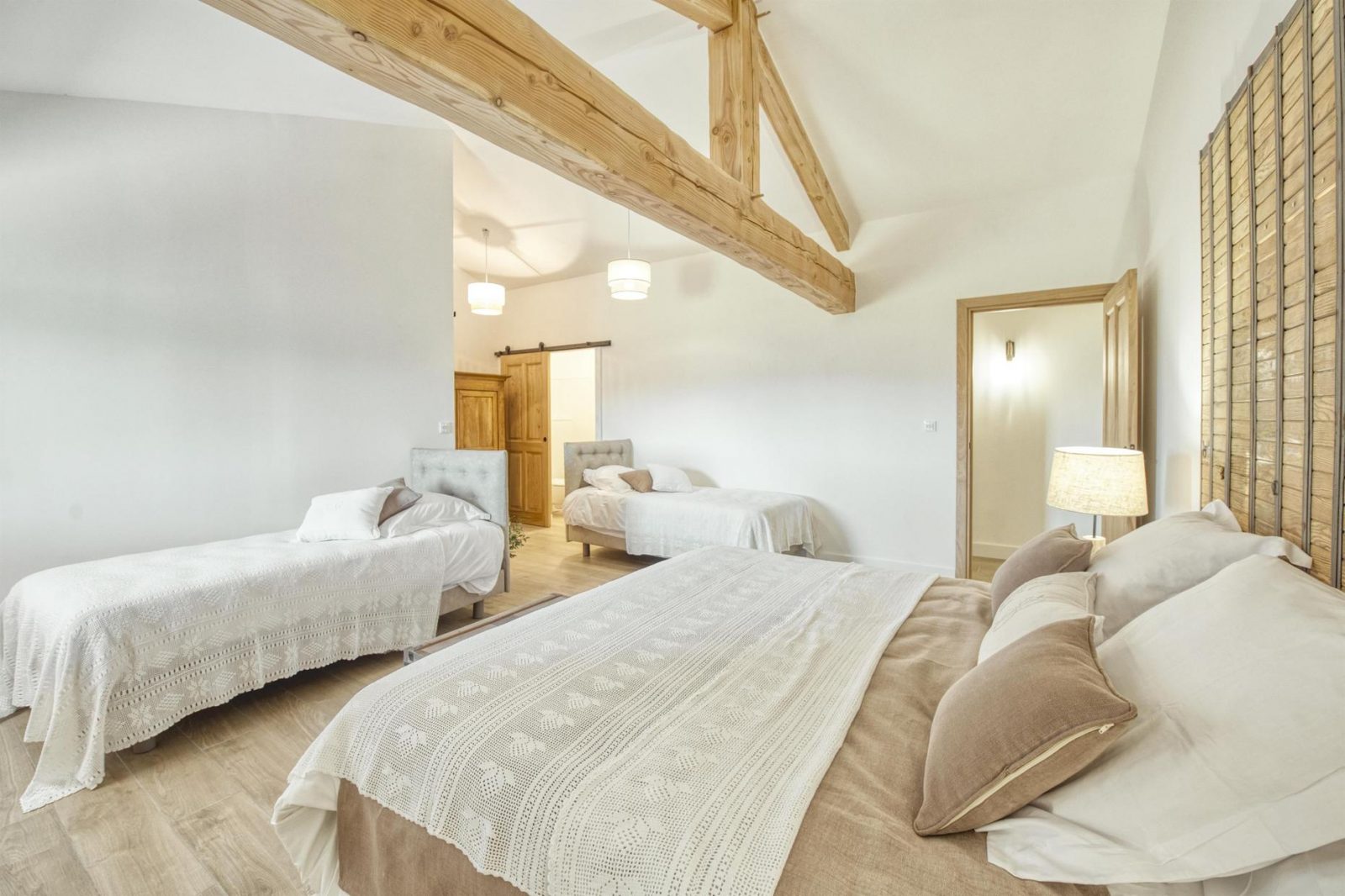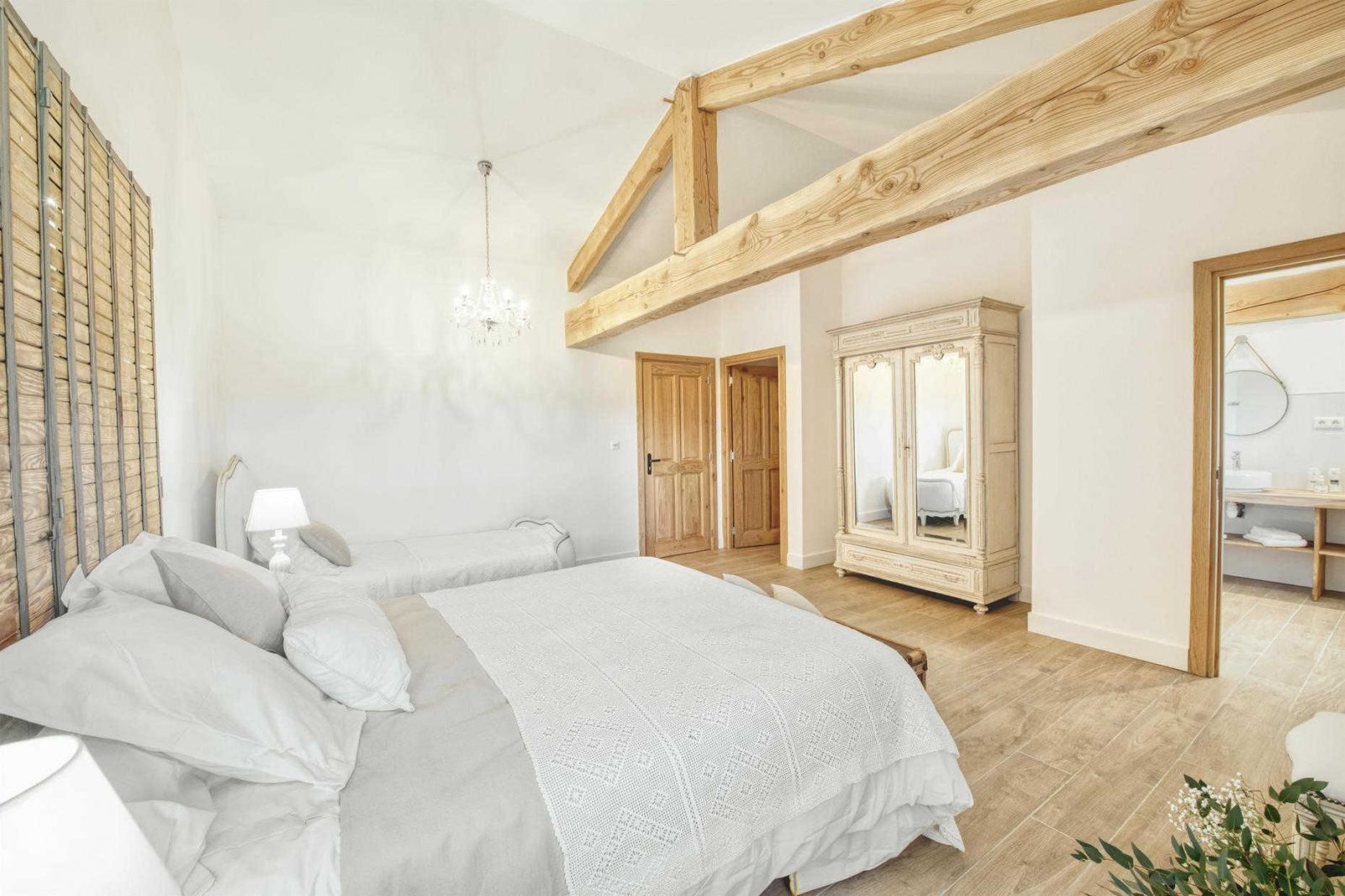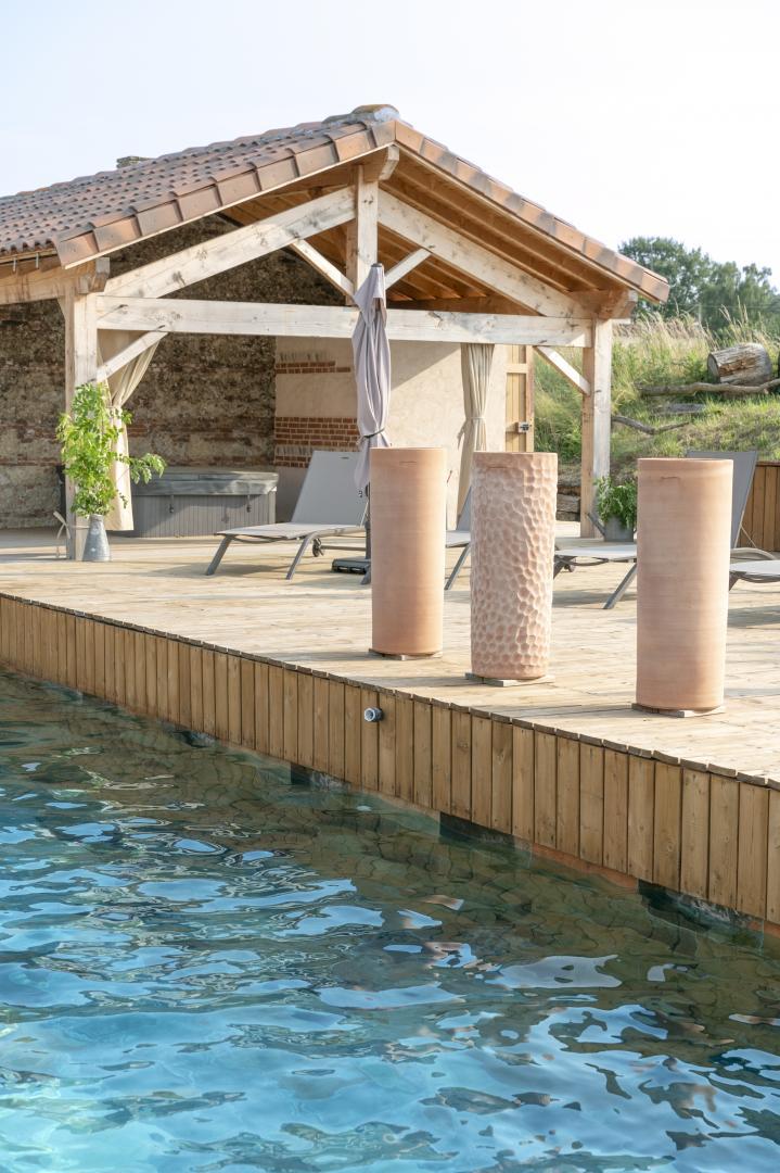 Domaine d'Escons is an 18th-century farmhouse flanked by two towers, which Anne and her family have given a new lease of life by restoring it with passion. But it's also a new life for Anne, who has set up as a farmer and offers to welcome her customers on site, in 4 beautiful guest rooms and a farmhouse inn where the products of the farm will be served. She'll be delighted to show you around... Everything here has been designed with relaxation in mind: heated swimming pool (alarm), open from mid-May to the end of September, solarium, 3-seater jacuzzi, large shaded terrace. When it comes to leisure activities, Anne has also thought of everything: bowling green, volleyball and badminton courts, bike hire. Around 40 km from the centre of Toulouse and easily accessible from the A64 motorway, Domaine d'Escons will delight couples looking for a rural getaway, families with children and business people, who will find a seminar room for 12 people and an auberge for meals. Anne's commitment to an eco-responsible approach is reflected in every aspect of the house: use of local materials, renovated antique furniture, local sourcing, rainwater harvesting... The chic, understated decor of the house features natural materials and materials made in France. - On the ground floor: a communal lounge that can be used as a seminar room, and a farmhouse inn where breakfasts and evening meals are served. Chambre Les Senteurs du Jardin, accessible to people with reduced mobility (1 double bed (160cm), shower room/WC). - upstairs, 3 bedrooms: Le Pigeonnier Romantique (1 double bed (160cm), shower room, separate WC), Les Ailes du Moulin (1 double bed (160cm), possibility of an extra single bed (90cm), shower room, separate WC) and Le Soleil Levant (2 twin beds (90cm), possibility of extra single beds (90cm), shower room, separate WC).