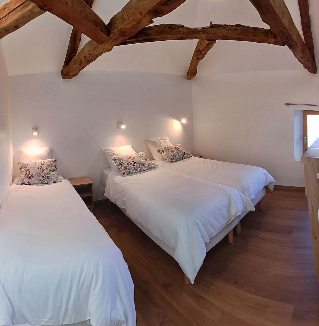 Trois chambres: - Chambre Thalia: 2 lits simples, WIFI, Salle d’eau, accessibilité PMR, Petit-déjeuner inclus, Piscine à disposition - Chambre Calliopé: 4 lits simples dont deux jumelables, WIFI, Salle d’eau, Petit-déjeuner inclus, Piscine à disposition - Chambre Harmonie: 4 lits simples dont deux jumelables, WIFI, Salle d’eau, Petit-déjeuner inclus, Piscine à disposition