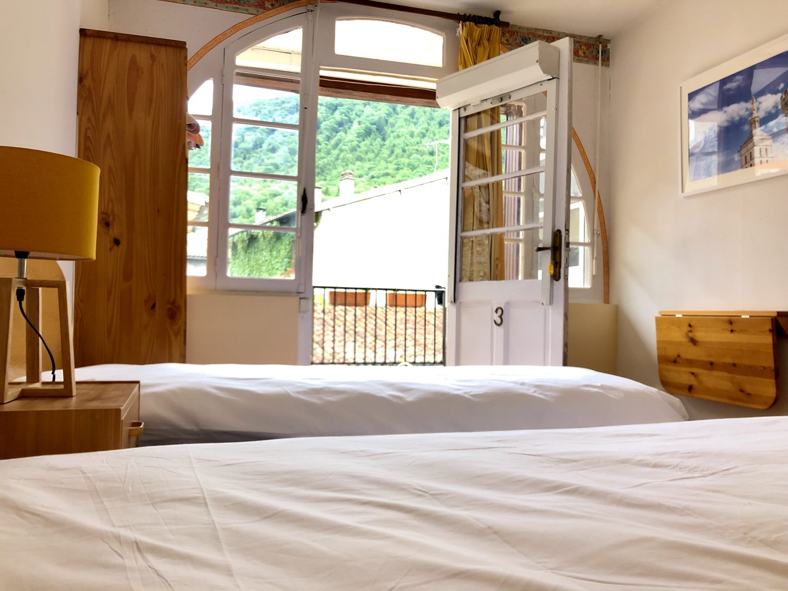 Several bed configurations. Sleeps 12 people. A private terrace overlooks the restaurant courtyard and the Pyrenean foothills. Le Rocher guests have free access to the library, games room and cafeteria in the upper part of the building. By reservation only.