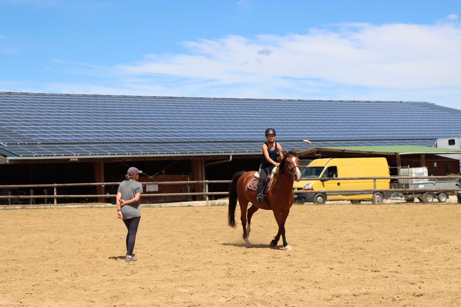 Meadow and box boarding, horse training and breaking-in, rides and trail rides, lessons and competition outings. Facilities: 20 x 40 covered riding arena, round pen, 80 x 50 arena, boxes and meadow. Cross-country arena (available for hire)