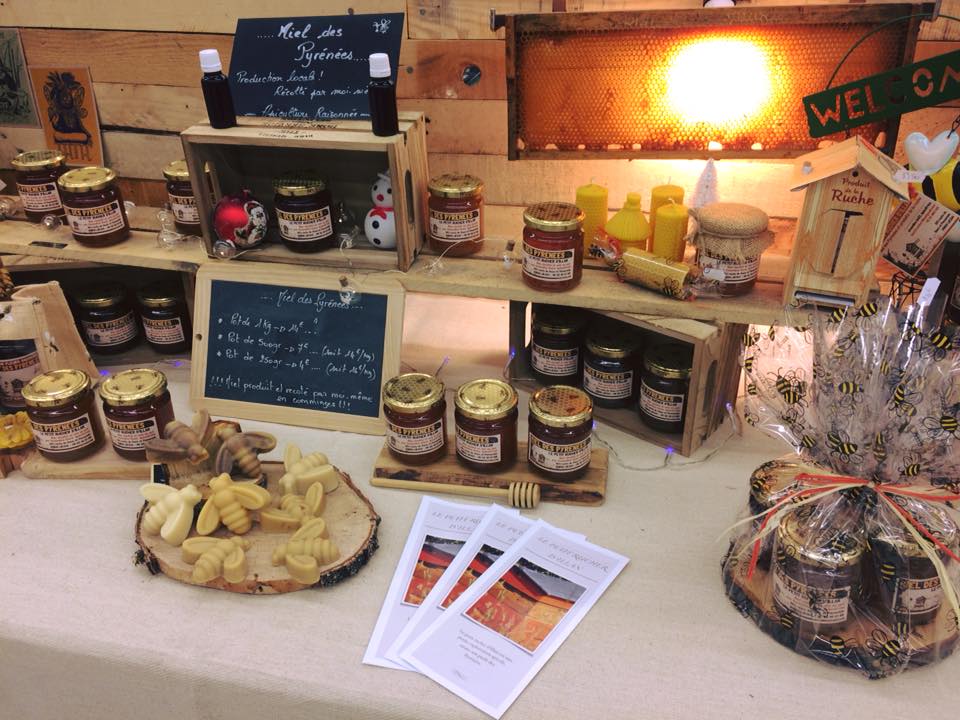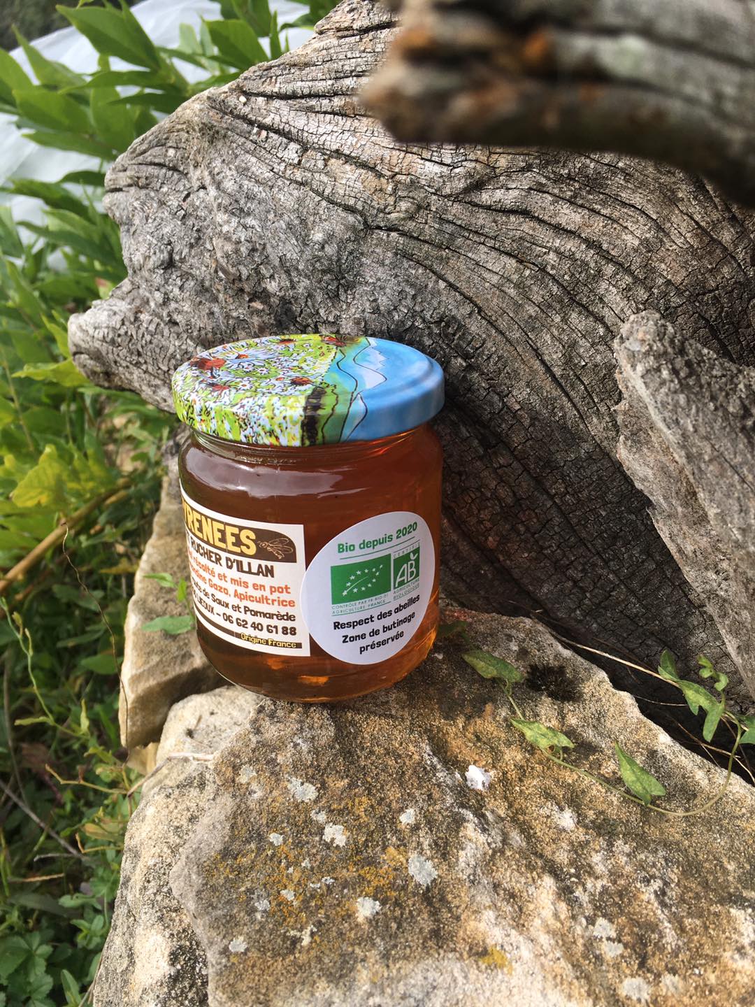 Miel artisanal en agriculture biologique. Produit, récolté, et mis en pots par l'apicultrice. Bougies fabrication artisanale à la cire d'abeille.
